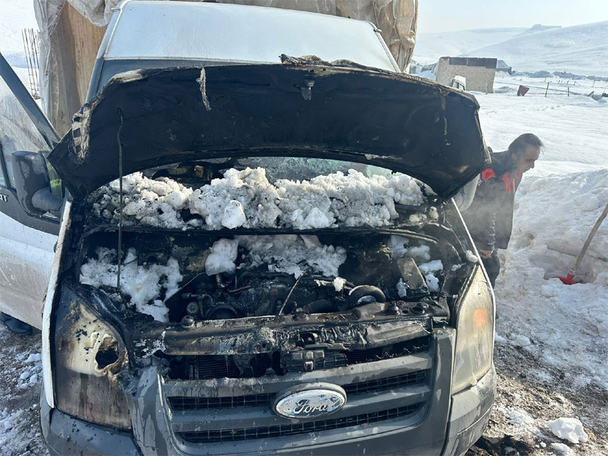 YÜKSEKOVA - İlçeye bağlı İnanlı Köyü’nde bir minibüs, henüz belirlenemeyen bir nedenle alev aldı. Yangını fark eden çevredeki vatandaşların ihbarı üzerine olay yerine belediyeye bağlı itfaiye müdürlüğü ekipleri sevk edildi.