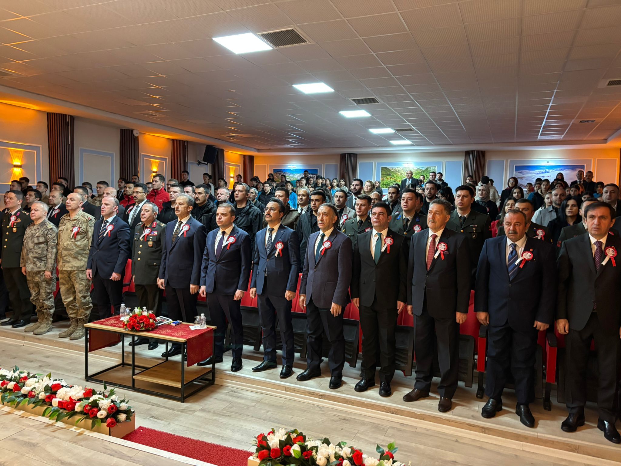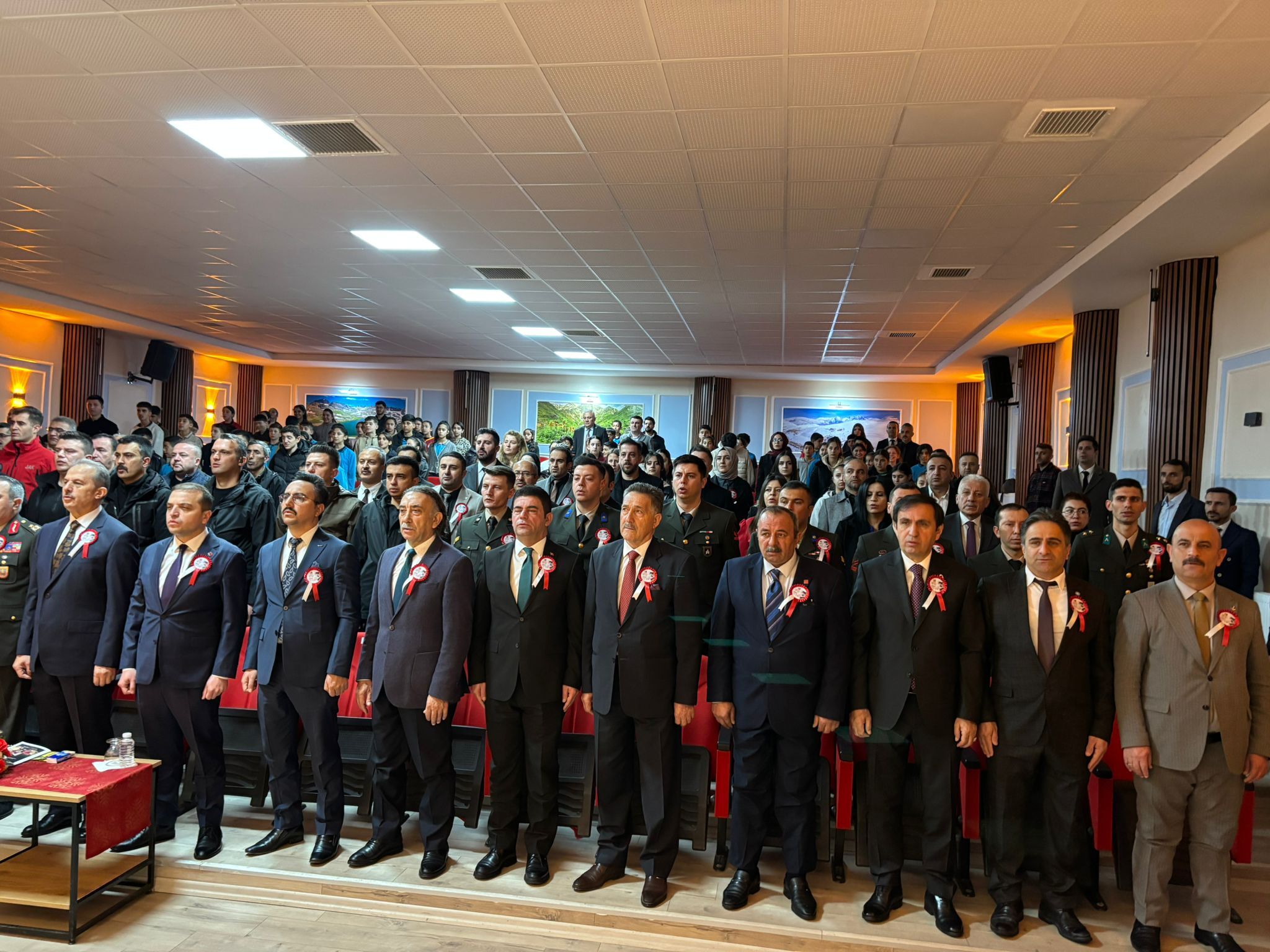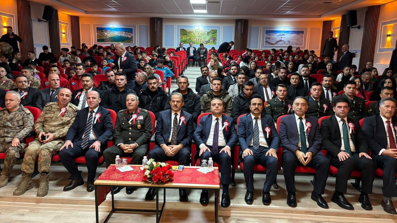 HAKKARİ- Sümbül Mahallesinde bulunan Mücahit Tunç Konferans Salonu'nda düzenlenen programda saygı duruşunda bulunuldu, İstiklal Marşı okundu.