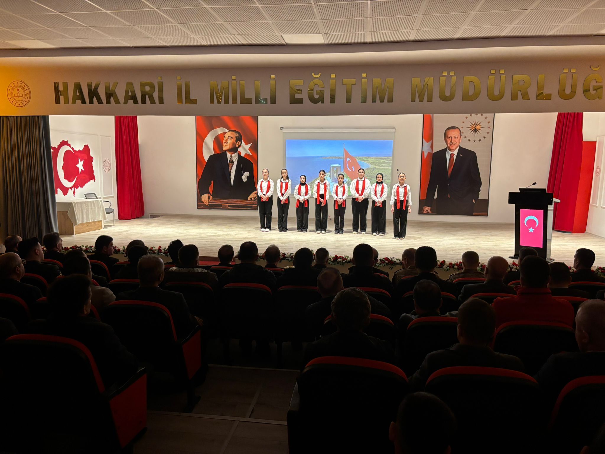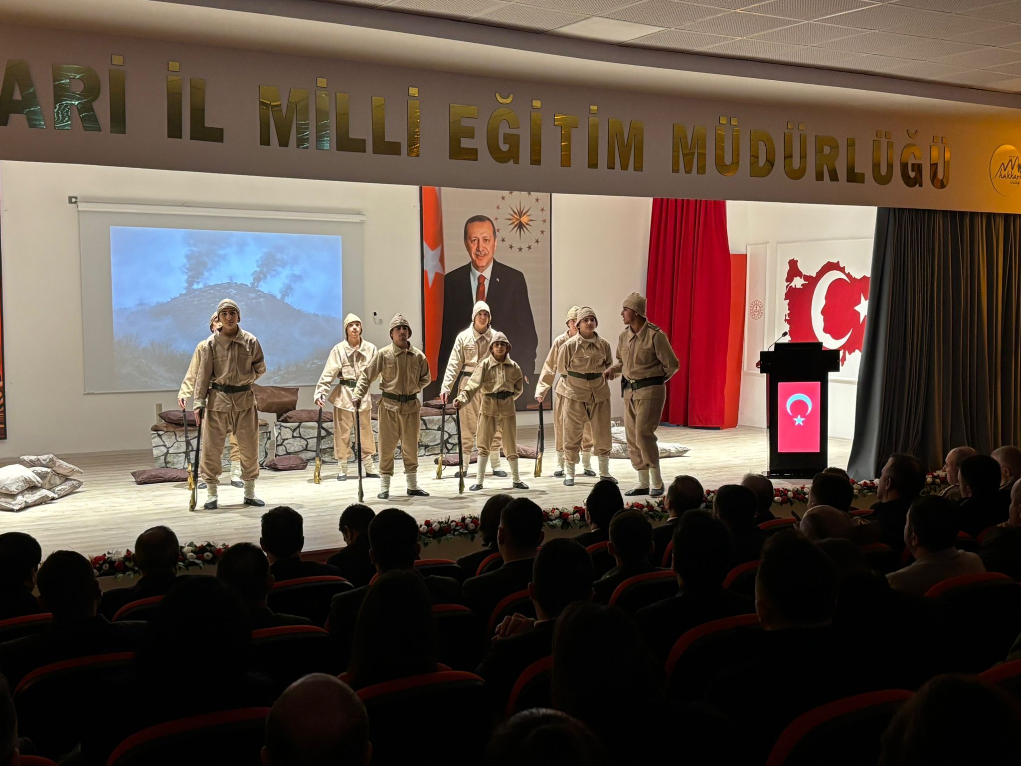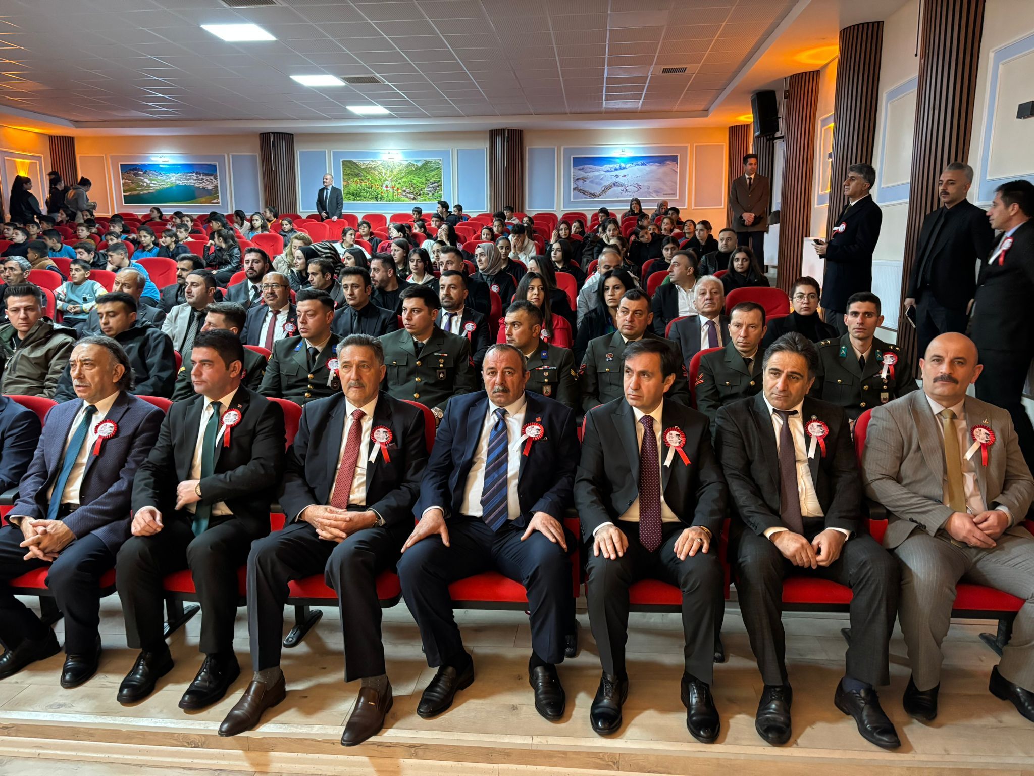 HAKKARİ- Sümbül Mahallesinde bulunan Mücahit Tunç Konferans Salonu'nda düzenlenen programda saygı duruşunda bulunuldu, İstiklal Marşı okundu.