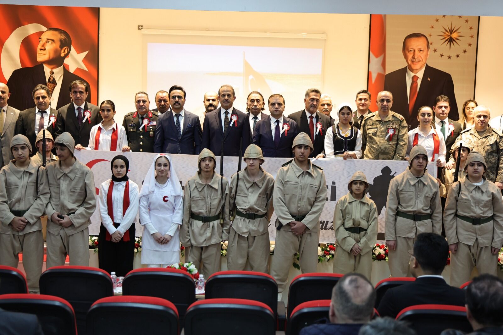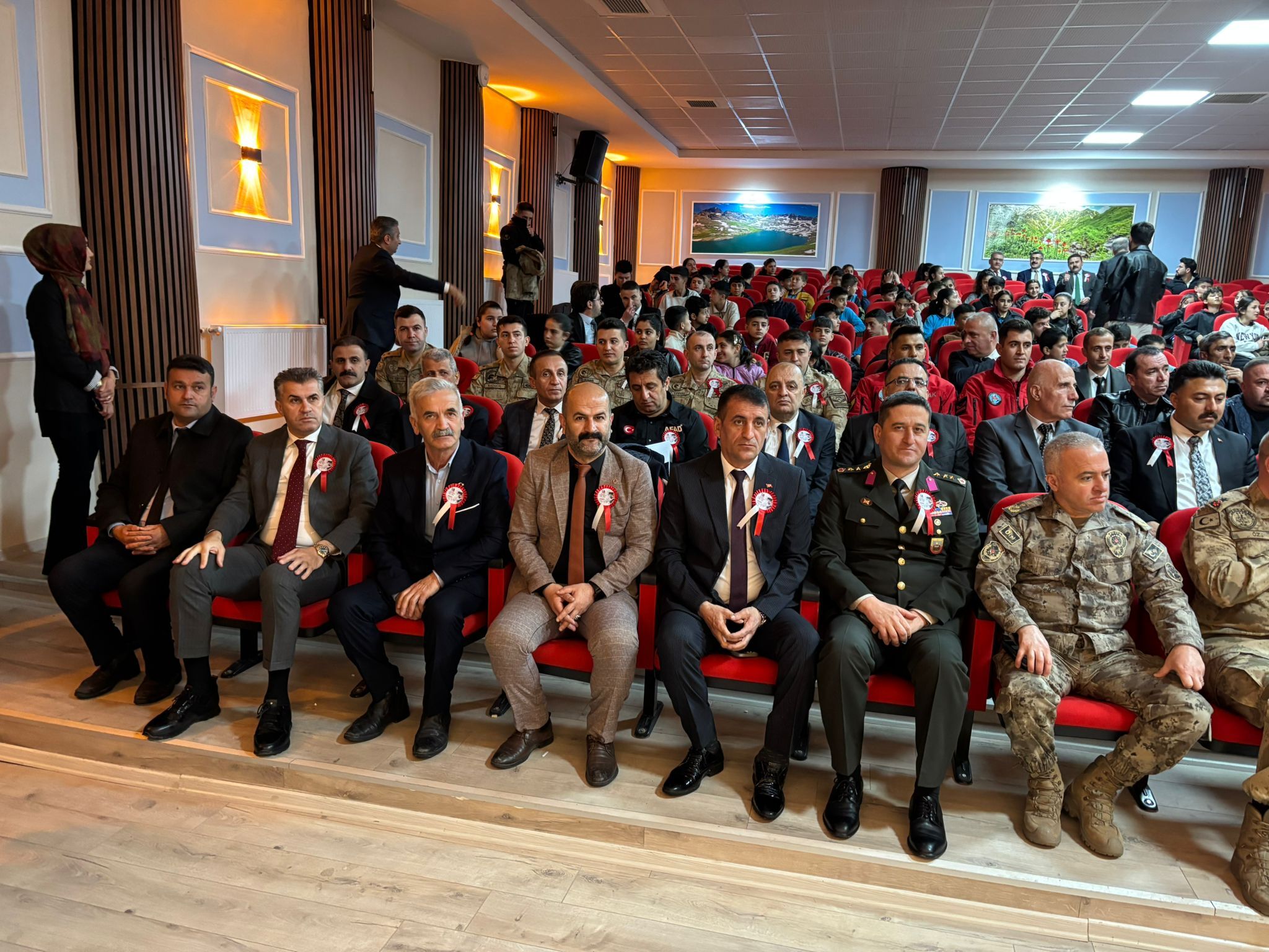 Gazi Mustafa Kemal Atatürk Anadolu Lisesi öğrencilerinin hazırladığı resimlerin sergilendiği programa Cumhuriyet Başsavcısı Burak Hazinedaroğlu, Hakkari 1. İdare Mahkemesi Başkanı Erkan Seydibey, Vali Yardımcısı Recep Gündüz, Hakkari Üniversitesi Rektörü Prof. Dr. Musa Gençcelep, İl Jandarma Komutanı Tuğgeneral Cafer Öz, İl Emniyet Müdürü Attila Ayata, Milli Eğitim Müdürü Nurettin Yılmaz, AK Parti İl Başkan Yardımcısı Mehmet Yoldaş, CHP Merkez İlçe Başkanı Celal Besi,MHP İl Başkan Yardımcısı Nadir Yılmaz, İYİ Parti İl Başkanı Ali Önal, Yeniden Refah Partisi İl Başkanı Sabahattin Mavigöz, Büyük Birlik Partisi İl Başkanı Sinan Yördem, Türkiye Şehit Aileleri ve Gaziler Vakfı İl Başkanı Vahit Çiftçi ile kurum amirleri, siyasi parti ve sivil toplum kuruluşlarının temsilcileri, öğrenci ve öğretmenler katıldı.