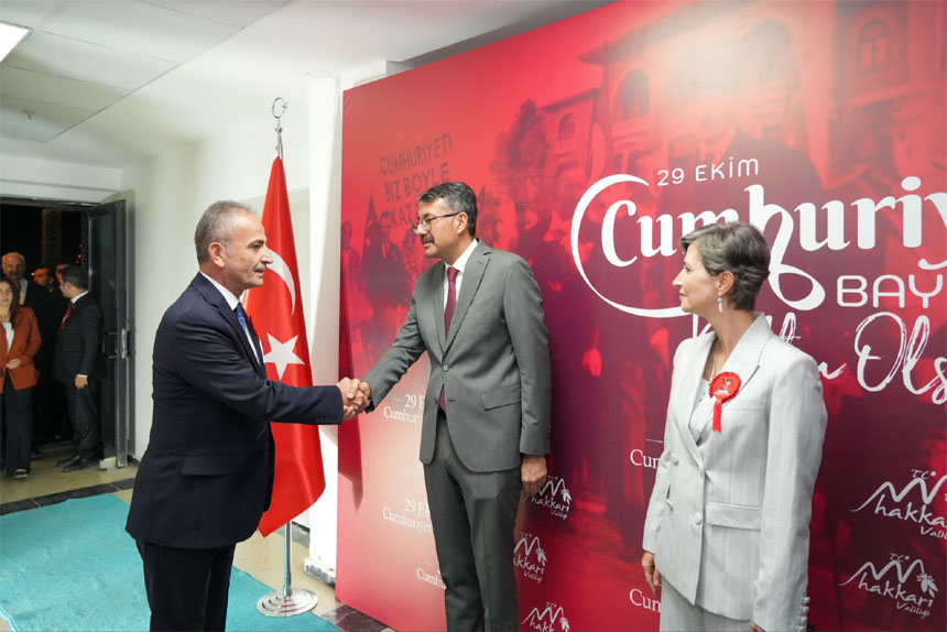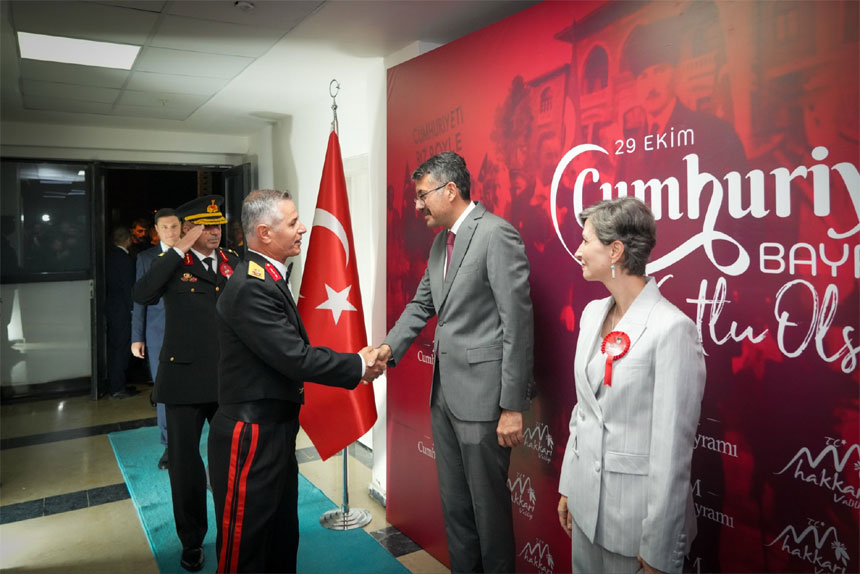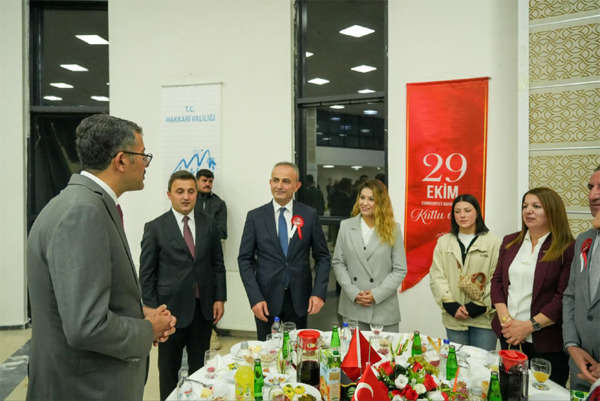 HAKKARİ - Türkiye Cumhuriyeti’nin 102. kuruluş yıl dönümü dolayısıyla Hakkâri Öğretmenevinde 29 Ekim Cumhuriyet Bayramı resepsiyonu düzenlendi. Hakkâri Valisi Ali Çelik’in ev sahipliğinde gerçekleştirilen resepsiyon, kentte birlik ve beraberlik mesajlarının verildiği anlamlı bir buluşmaya sahne oldu.