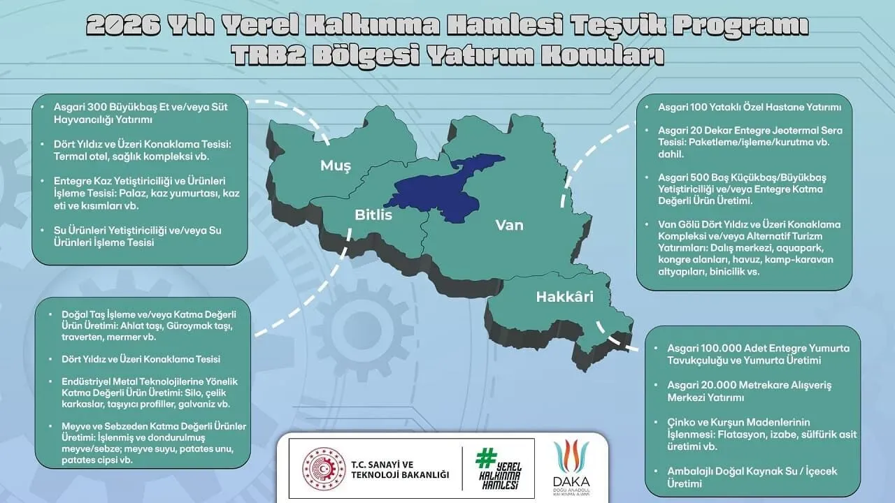 Bakanlık tarafından yayımlanan program, başta tarım, hayvancılık, sanayi ve ticaret olmak üzere birçok alanda Hakkari’ye önemli yatırım fırsatları sunuyor. Teşviklerin, hem yerli hem de dış yatırımcıların kente olan ilgisini artırması bekleniyor.