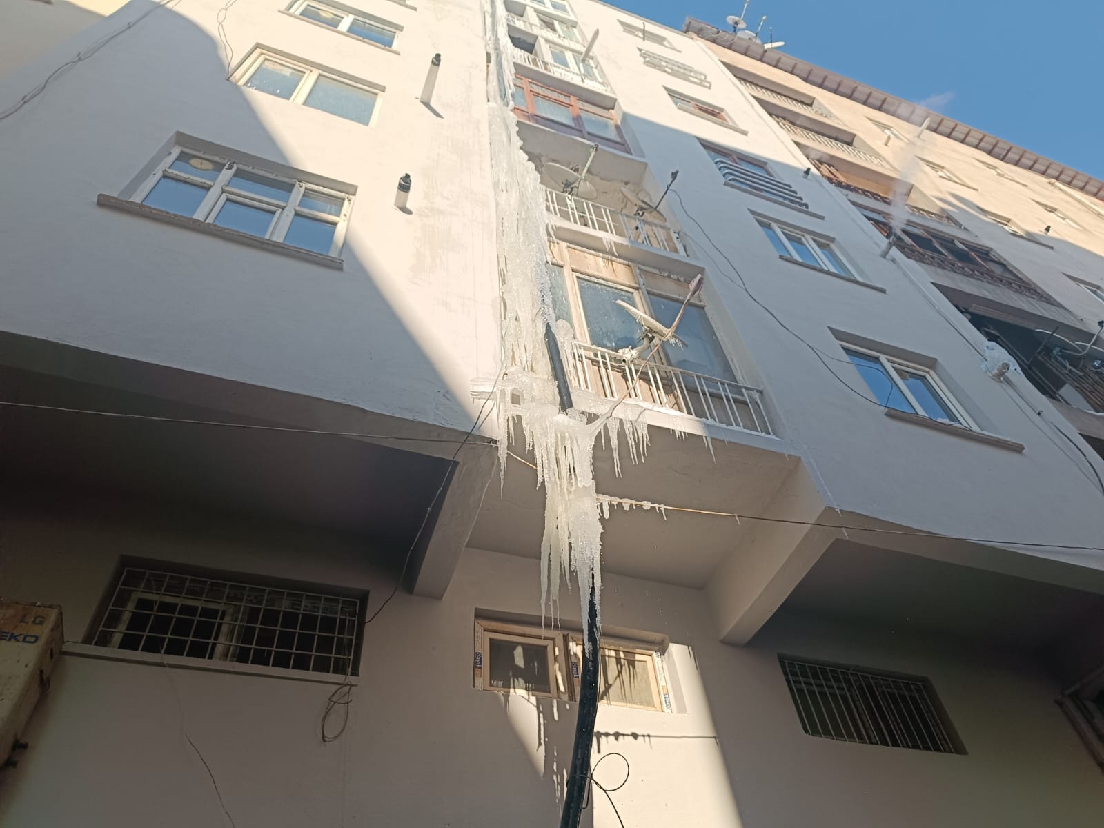 Soğuk havanın etkisiyle ev ve iş yerlerinin çatılarında oluşan buz sarkıtları ise tehlike saçıyor. Kent genelinde birçok binanın çatısından sarkan buzların boyu yer yer 3 metreyi aşarken, yetkililer vatandaşları bu alanlarda dikkatli olmaları konusunda uyarıyor.
