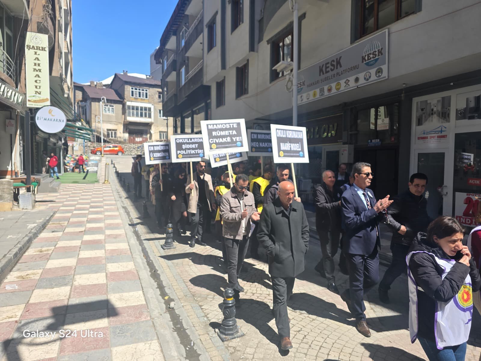 HAKKARİ- Hakkari’de Eğitim Sen Şubesi, Şanlıurfa’nın Siverek ilçesinde bir okulda meydana gelen silahlı saldırıya tepki göstermek amacıyla yürüyüş ve basın açıklaması düzenledi.