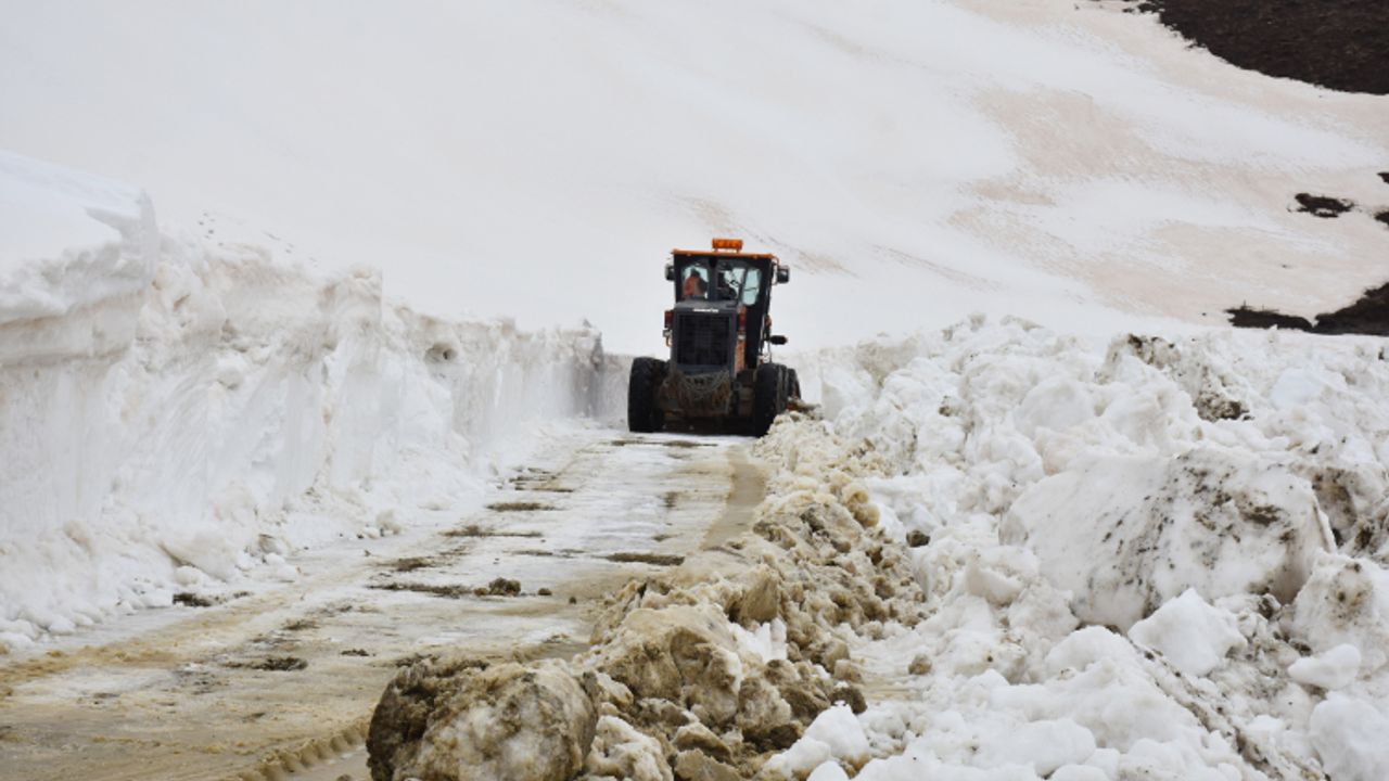 Zorlu arazi şartlarında kar kalınlığının yer yer 2 metreyi bulduğu yolu açmak için mesai yapan ekipler, bazı noktalarda kar tabakasının sertleşmesi nedeniyle güçlükle ilerleyebiliyor.