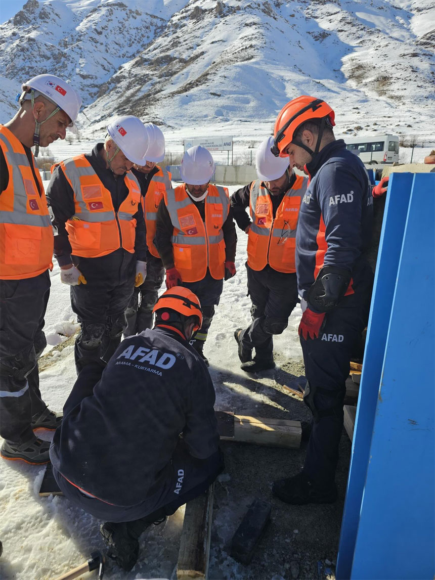 Eğitim kapsamında katılımcılar, enkazda arama ve kurtarma tekniklerini, saha ve enkaza güvenli giriş prosedürlerini ve riskli ortamlarda hareket yöntemlerini sahada deneyimledi.