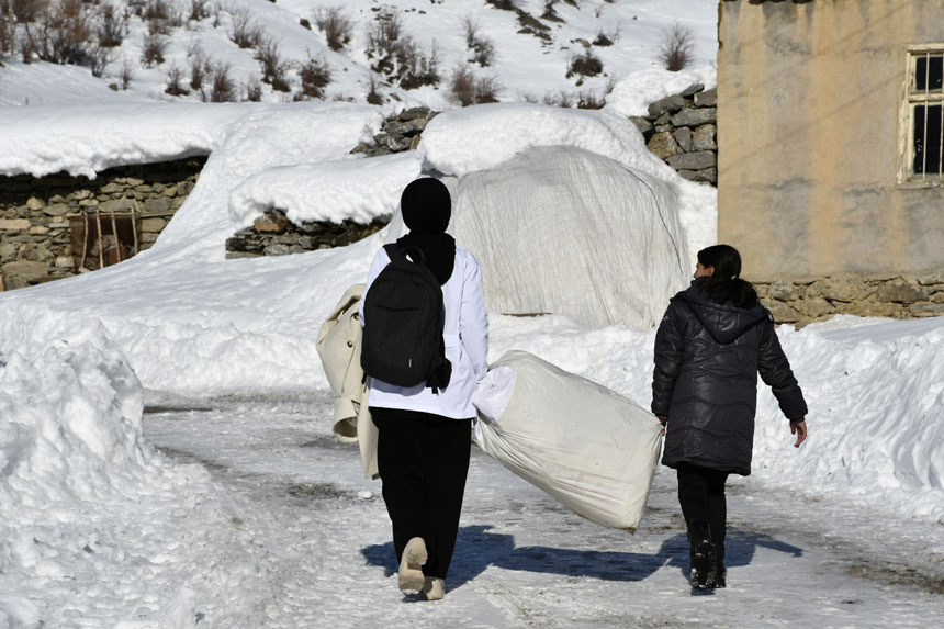 Köylülerle iç içe bir yaşam sürdürdüğünü belirten Yaşar, “Köylülerle birlikte oturup sohbet ediyoruz. Zaman zaman koyunların yanına gidiyor, işlerinde yardımcı oluyorum. Ekmek pişirirken destek oluyorum. Elimden geldiğince onlarla iç içe olmaya çalışıyorum. Zorlu şartlar var ama ben de benzer koşullarda yetiştim. Muş’ta da kışlar zorludur. Burada imkânlar biraz daha kısıtlı olsa da zorlandığımı düşünmüyorum,” şeklinde konuştu.