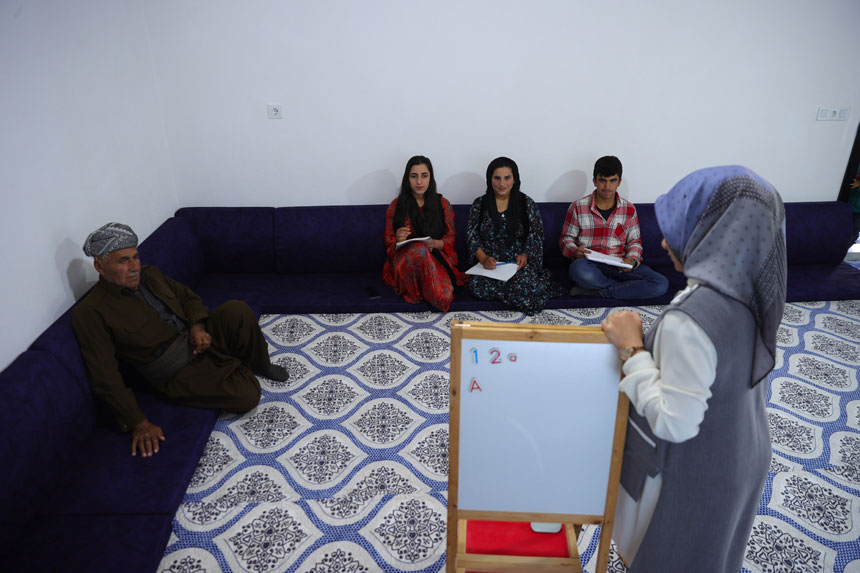 Şimdi de okuldaki 4 öğrencisini en iyi şekilde geleceğe hazırlamaya çalışan fedakar öğretmen, mezrada okuma yazma oranının artması için boş zamanlarında yanına aldığı yazı tahtasıyla evleri dolaşarak anne ve babalara gönüllü olarak ders veriyor.
