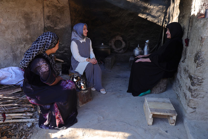 "Öğretmenimiz çok iyi. Allah razı olsun. Gülay hocamızı kızım gibi seviyorum. Allah devletimizden razı olsun. Burada okul yaptırmış, öğretmen göndermiş. Öğretmenimizi seviyoruz. İhtiyacımız olduğunda yardımcı oluyor bize. Evlere gelip ders anlatıyor."