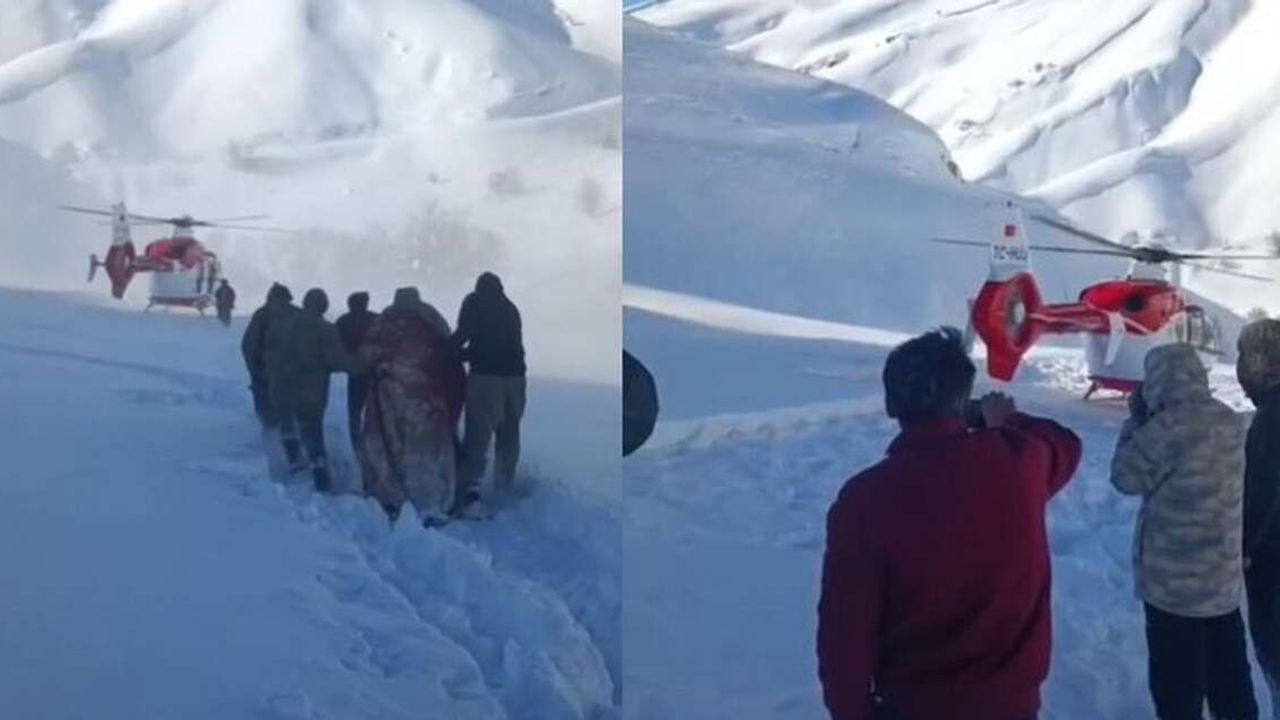 HAKKARİ-Hakkari’nin Şemdinli ilçesine bağlı Alan Köyü’nde, olumsuz hava koşulları ve yoğun kar yağışı nedeniyle kara ulaşımının sağlanamadığı bölgede bulunan 25 yaşındaki 8 aylık gebe hasta, helikopter ambulansla hastaneye ulaştırıldı.