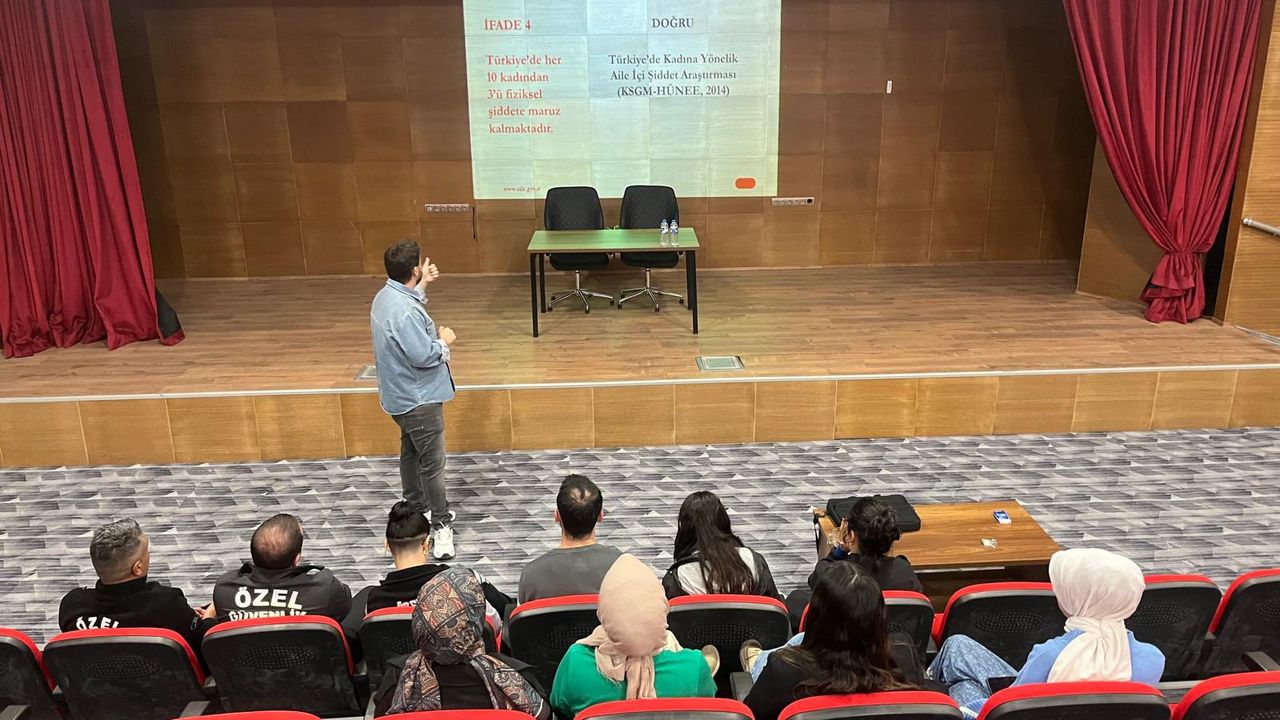 Eğitimde, kadına yönelik şiddetin türleri, nedenleri, toplumsal etkileri ve şiddetle mücadelede izlenecek yasal süreçler hakkında katılımcılara bilgi verildi.