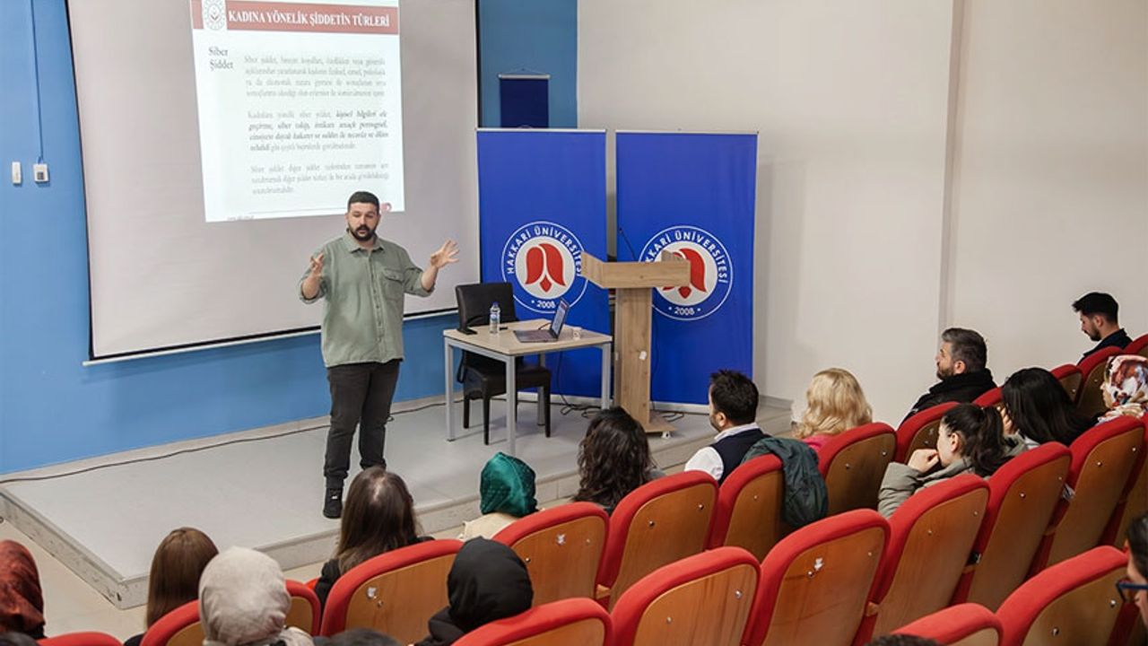 Seminere konuşmacı olarak katılan Hakkari Aile ve Sosyal Hizmetler Müdürlüğü Şiddet Önleme ve İzleme Merkezi (ŞÖNİM) personelleri Psikolog Yusuf Duman ve Sosyolog Kemal Özer, “Kadına Yönelik Şiddetle Mücadele ve Önleyici Bir Faktör Olarak İletişim” başlığı altında katılımcılara kadına yönelik şiddetin nedenleri, kadın, aile, çocuk ve toplum üzerindeki etkileri ile iletişimin şiddeti önlemedeki rolüne ilişkin kapsamlı bilgiler sundu.