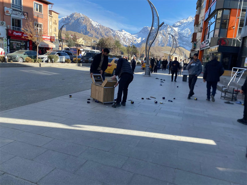 HAKKARİ – Hakkari Zabıta Müdürlüğü ekipleri, Bulvar Caddesi Atatürk Anıtı yanındaki kaldırımda ayakkabı boyacılığı yapan Kerimullah Turan’ın boya sandığını kaldırmak isteyince bölgede kısa süreli bir gerginlik yaşandı.