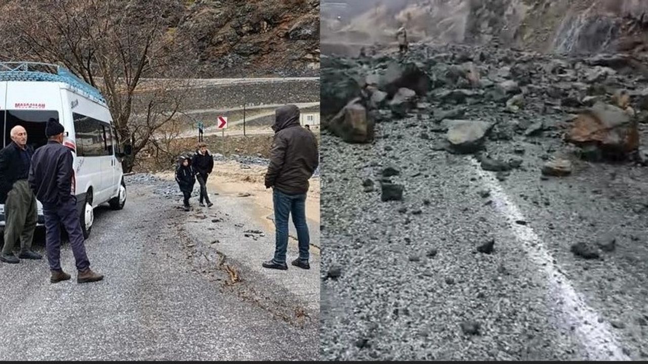 Dağlık alandan kopan kaya parçaları ve sürüklenen toprağın yolu kapatması nedeniyle ulaşımda aksama yaşandı.
