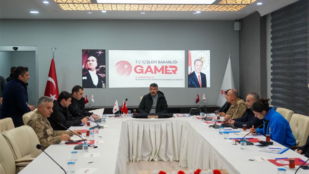 Hakkari Valiliğinin sosyal medya hesabından yapılan açıklamaya göre, Hakkari Güvenlik ve Acil Durumlar Koordinasyon Merkezi’nde (GAMER) düzenlenen toplantıya vali yardımcıları ile ilgili kurum ve birim müdürleri katıldı. Açıklamada, 1 Ocak 2026 itibarıyla kar yağışının etkisini artırmasının beklendiği, son günlerde devam eden yoğun kar yağışı nedeniyle yüksek kesimlerdeki kar birikintilerinin çığ riski oluşturduğu, düşük hava sıcaklıkları sebebiyle de don ve buzlanma tehlikesinin bulunduğu ifade edildi.
