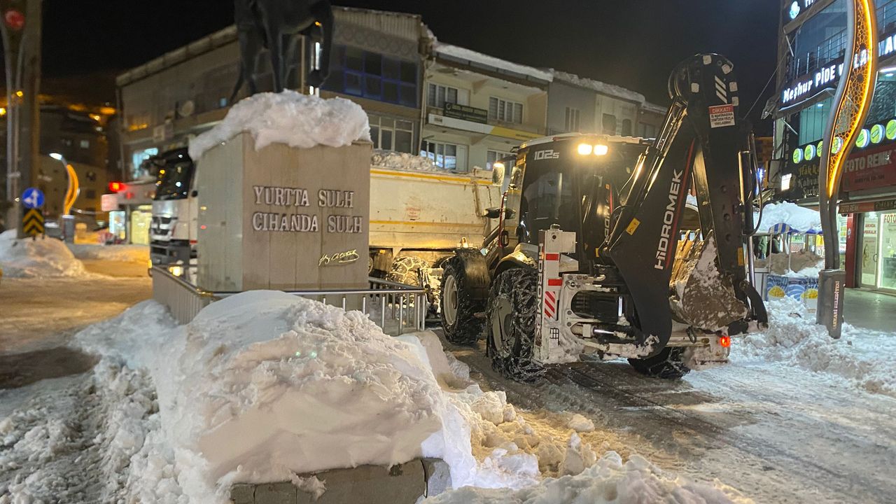 HAKKARİ-Hakkari’de günlerdir etkili olan yoğun kar yağışının etkisini azaltmasıyla birlikte belediye ekipleri, trafiğin daha sakin olduğu gece saatlerinde kar temizleme çalışmalarına hız verdi. Kent merkezinde kar kalınlığının yer yer 70 santimetreyi bulması nedeniyle özellikle dar sokaklar ve ana arterlerde yoğun mesai yapılıyor.