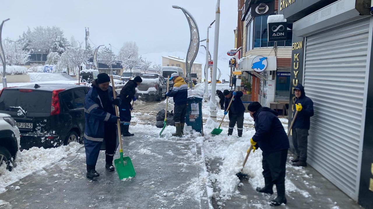 HAKKARİ-Kar yağışı sonrası sahaya çıkan belediye ekipleri, yol, sokak ve kaldırımlarda temizlik çalışmaları yaparak ulaşımın aksamaması için yoğun mesai harcıyor.
