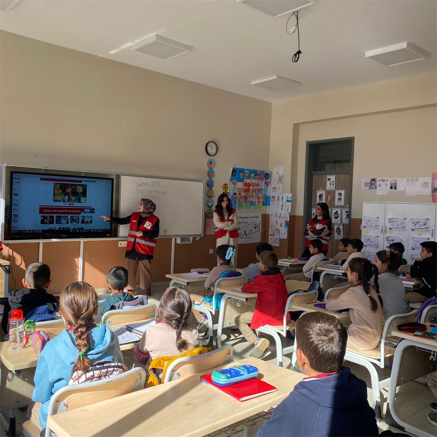 Türk Kızılay Hakkari Şubesi’nin sosyal medya hesabından yapılan paylaşımda, Kızılay İl Merkezi, Genç Kızılay, Kadın Kolları ve Üniversite Topluluğu ekiplerinin kentteki okullarda ve Hakkâri Üniversitesi’nde sunumlar düzenleyerek Kızılay’ın insani yardım misyonunu anlattığı belirtildi.
