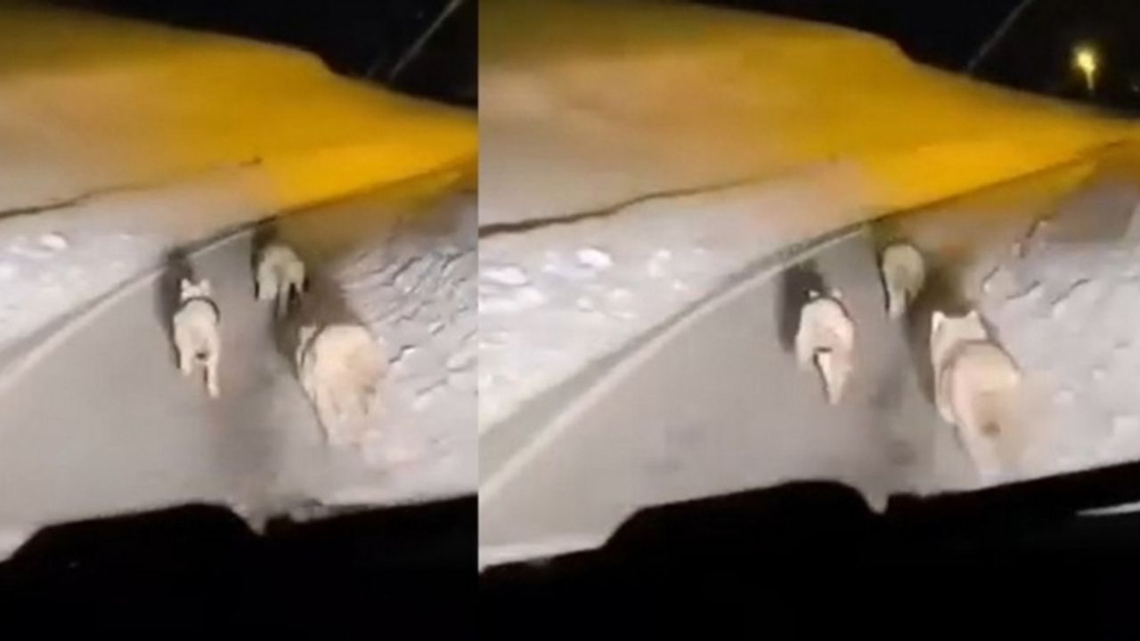 Görüntülerde, kurt sürüsünün bir süre yol üzerinde ilerlediği, daha sonra çevredeki araziye doğru yönelerek gözden kaybolduğu görüldü. O anlar, araç içerisindeki vatandaşlar tarafından sosyal medyada paylaşıldı.