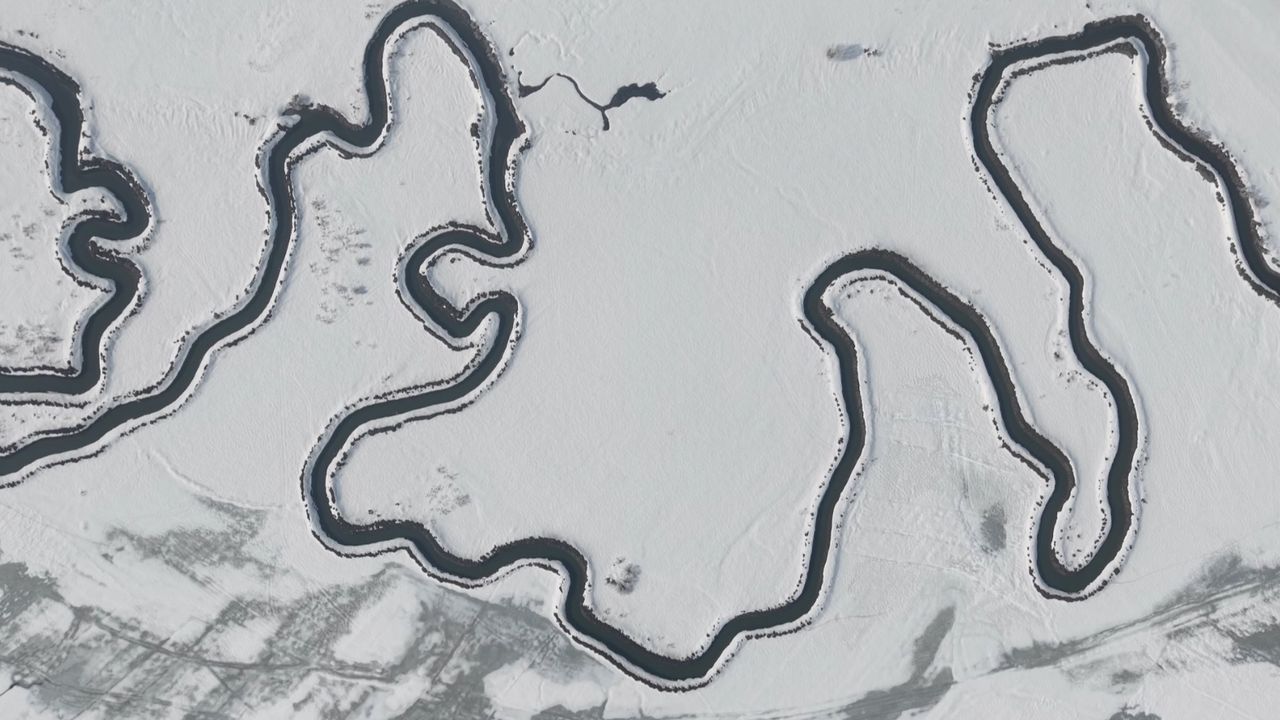 Kar yağışının ardından beyaz örtüyle kaplanan ve kısmen buzları çözülen mendereslerin kıvrımlı yapısı ise doğa tutkunlarının ilgisini çekti. Nehil Deresi’nin oluşturduğu manzara, dronla havadan görüntülendi.