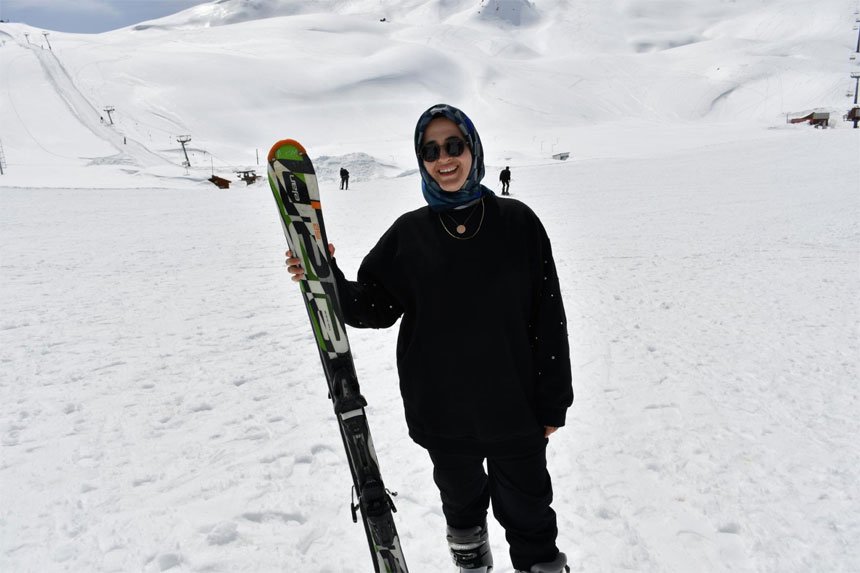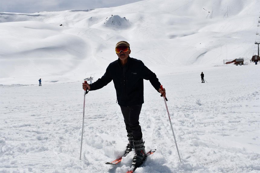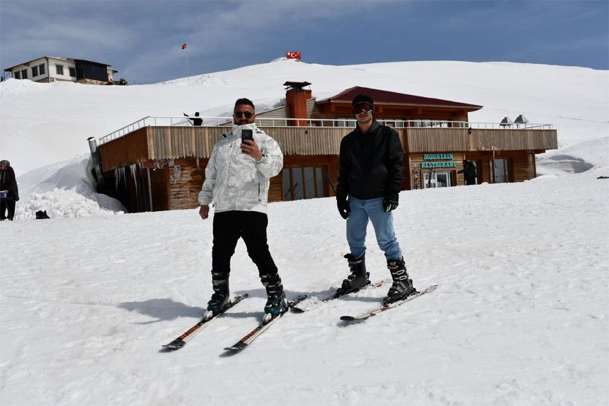Çukurca ilçesinden gelen Tahsin Taşkın Nisan Ayının üçüncü haftasında Mega Bütan Kayak Merkezinde 2 metre karda kaymanın keyfini yaşadıklarını söyledi.