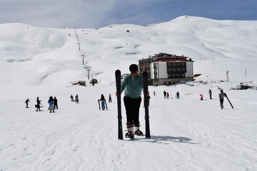 Şehir merkezine 12 kilometre mesafede bulunan ve bazı noktalarda kar kalınlığı 2 metreyi aşan Merga Bütan Kayak Merkezi, ilk bahar mevsiminde kayak tutkunlarını ağırladı.