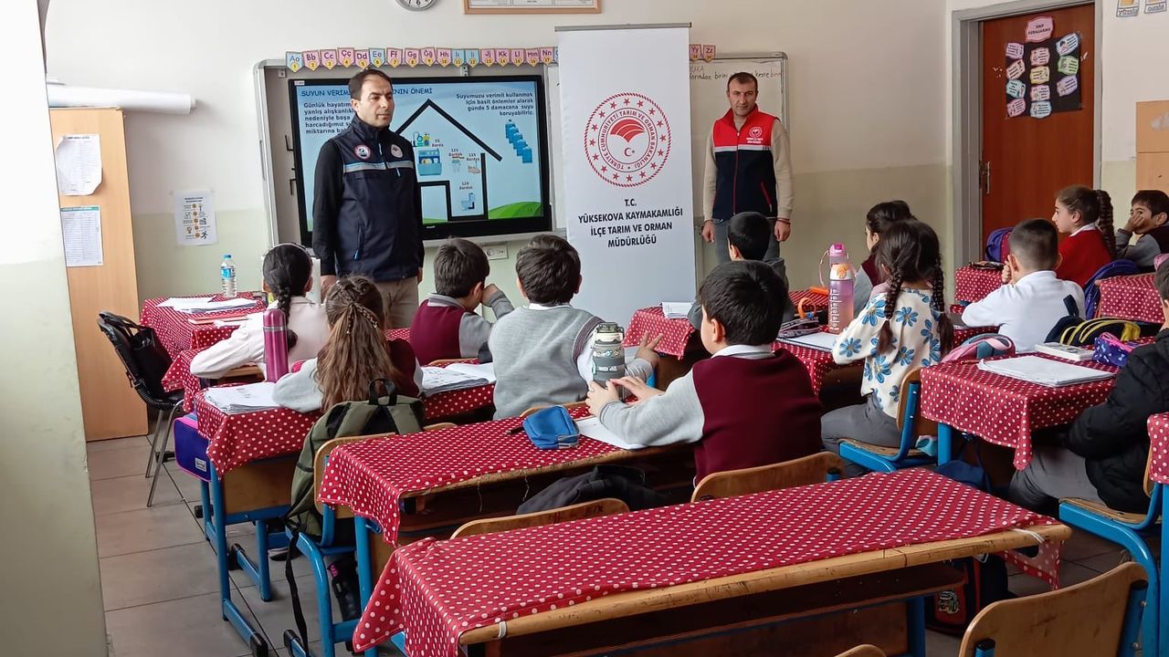 YÜKSEKOVA-Hakkari İl Tarım ve Orman Müdürlüğü tarafından yürütülen bilinçlendirme çalışmaları kapsamında Yüksekova ilçesinde öğrencilere yönelik su verimliliği ve tasarrufu eğitimi düzenlendi.