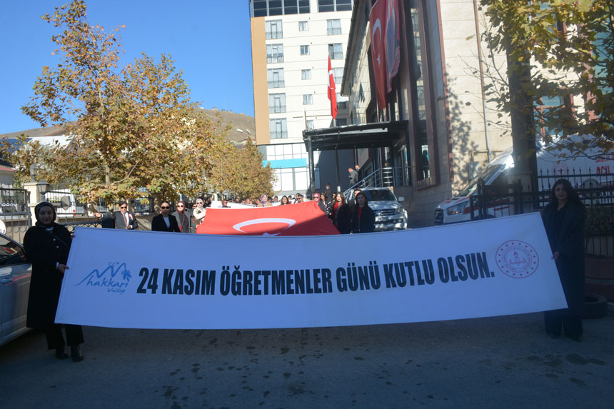 HAKKARİ – Hakkari’de 24 Kasım Öğretmenler Günü dolayısıyla sade bir yürüyüş ve çelenk sunma töreni gerçekleştirildi. Kent merkezinde yüzlerce öğretmenin katıldığı yürüyüş, İl Milli Eğitim Müdürlüğü önünden başlayarak Valilik önüne kadar sürdü.