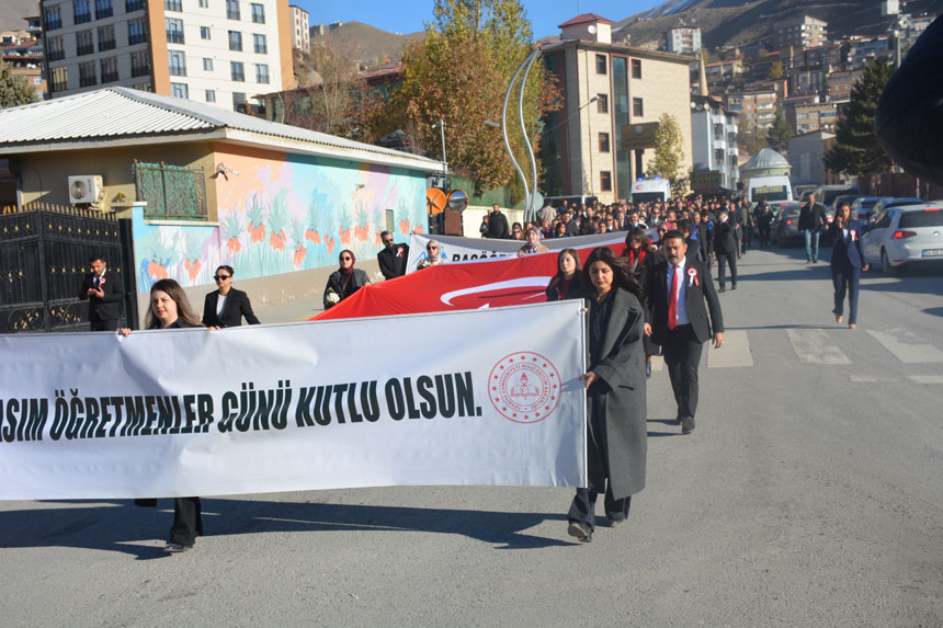 İl Milli Eğitim Müdürü Nurettin Yılmaz, Milli Eğitim Şube müdürleri, okul müdürleri ve çok sayıda öğretmen; yakalarında Atatürk fotoğrafı, ellerinde çiçekler ve “Başöğretmen Atatürk”, “24 Kasım Öğretmenler Günü Kutlu Olsun” pankartları ile yürüdü. Katılımcılar yürüyüşte dev Türk bayrağını taşıdı.