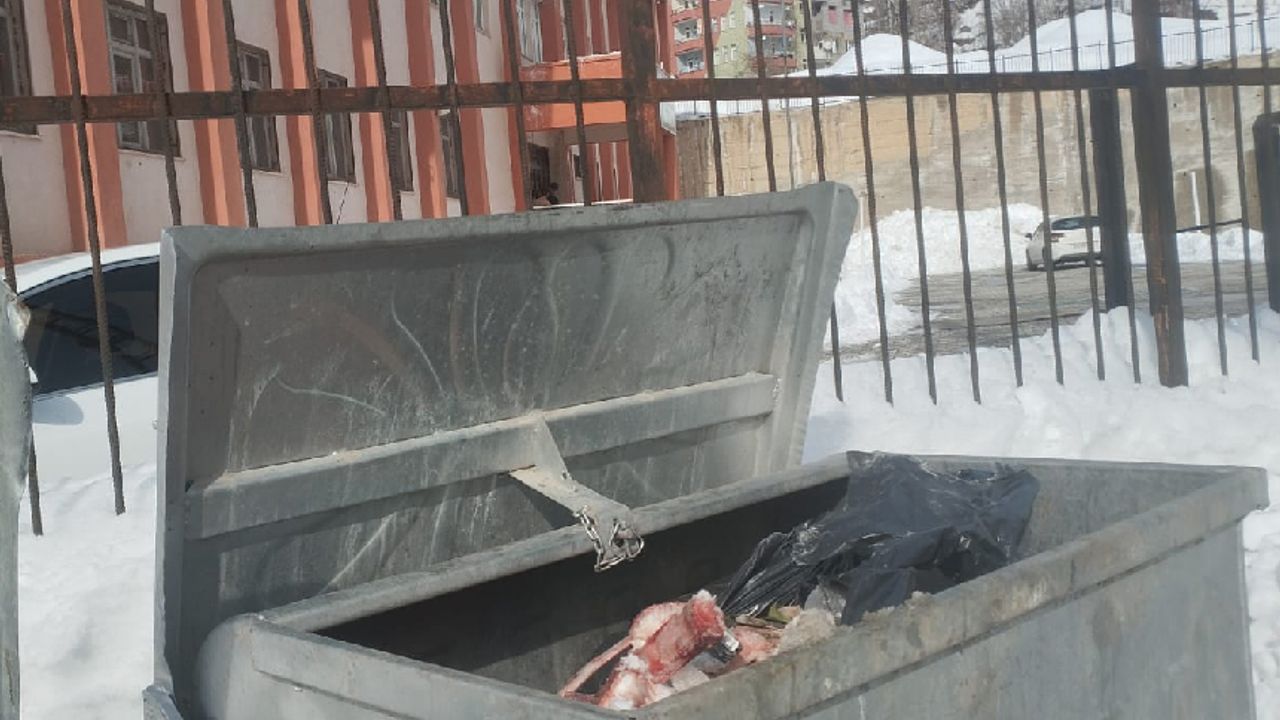 HAKKARİ – Hakkari’nin Biçer Mahallesi’nde, iki gün önce çöp konteynerine büyükbaş hayvanlara ait olduğu tahmin edilen yaklaşık 50 kilogram kemik atıldı. Şehit Vali Derviş Yalım İlk ve Ortaokulu’nun köşesinde bulunan çöp konteynerine bırakılan kemikler, mahalle sakinlerinin tepkisine neden oldu.