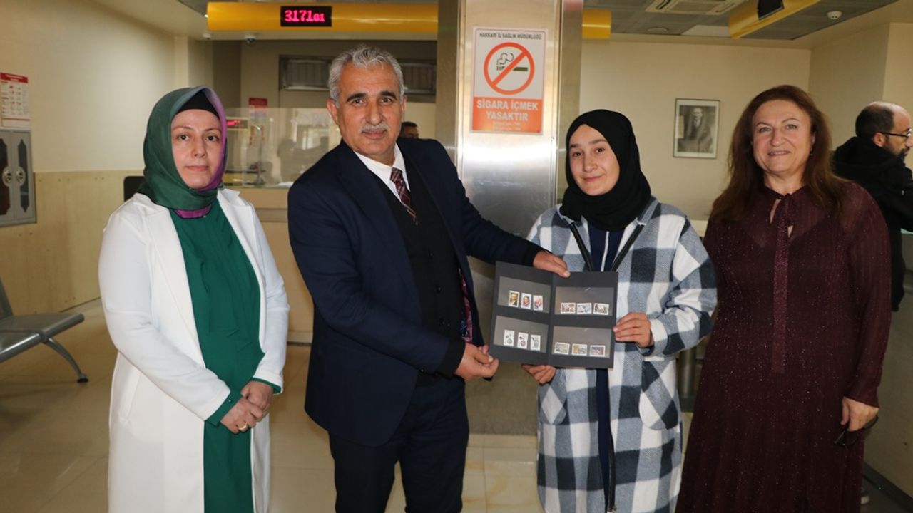 Hakkari PTT Başmüdürü Şehmus Alptekin , Cindioğlu’na PTT Pul Portföyü hediye etti.