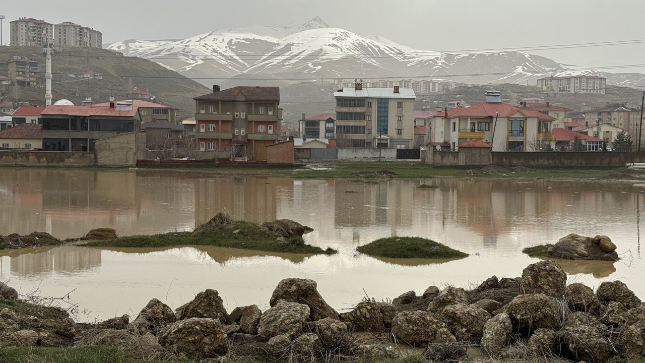 Yeni Mahalle'de bulunan Sabancı İlk ve Ortaokulu'nun bahçesi de yağış sonrası suyla kaplandı.