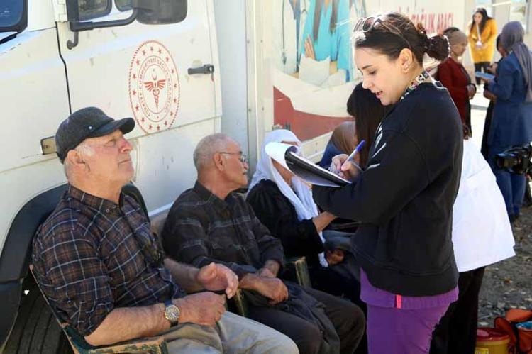 Bu arada köydeki erkeklerin de şeker ve tansiyonları ölçülüp, neler yapmaları gerektiği hakkında bilgilendirildi. Dr. Songül Çiftçi, yürütülen çalışmalar hakkında bilgi vererek, “İran sınırında bulunan Çobanpınar mezrası ve ulaşımı zor köylerde yaşayan vatandaşlarımıza sağlık hizmeti götürüyoruz. Boy, kilo, şeker ve tansiyon ölçümlerini yapıyoruz. Tanı koyduğumuz hastalarımıza reçete yazıyoruz. Ayrıca kanser taramaları kapsamında meme, rahim ağzı ve kolorektal (kalın bağırsak) kanseri testlerini uyguluyoruz" dedi.
