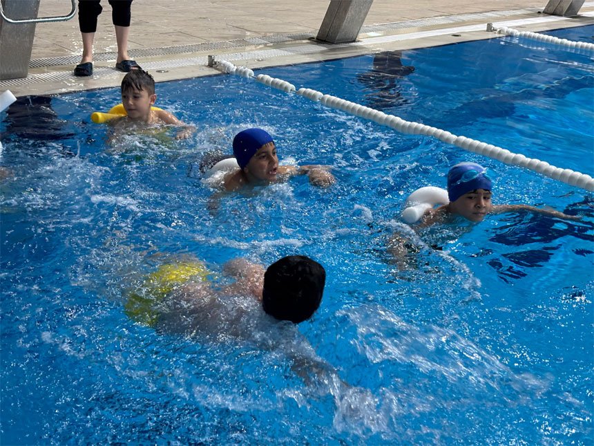 Yarı olimpik yüzme havuzunda uzman antrenörler eşliğinde eğitim alan çocuklar, burada hem arkadaşlık ediniyor hem de yüzme öğreniyor. Çocukları tribünden izleyen aileler de onların heyecan ve mutluluklarına ortak oluyor.