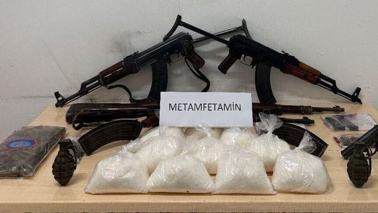 Yapılan aramalarda 5 bin gram metamfetamin, 3 adet AK-47 kalaşnikof piyade tüfeği, 1 adet mavzer tüfek, 2 adet el bombası, 1 adet tabanca, 19 adet şarjör, 424 adet fişek, 2 adet kütüklük ve 34 adet doldurma aparatı ele geçirildi.