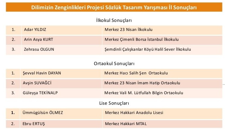 İlkokul, ortaokul ve lise kademelerinde gerçekleştirilen yarışmada öğrenciler, dilin zengin söz varlığını tanımak, kültür taşıyıcısı sözcüklerle buluşmak ve dili etkili kullanma becerilerini geliştirmek amacıyla hazırladıkları eserlerle katılım sağladı.