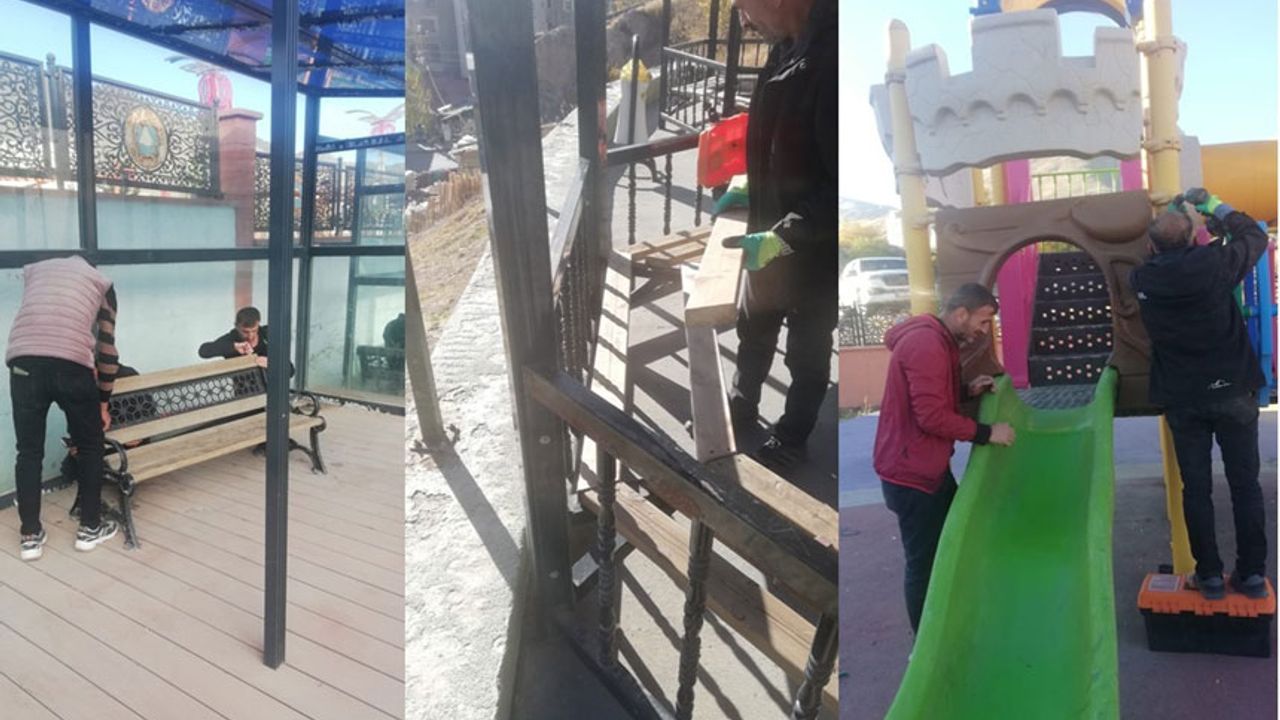 HAKKARİ – Kimliği belirsiz kişiler tarafından tahrip edilen iki park, Hakkari Belediyesi ekipleri tarafından kısa sürede onarıldı.