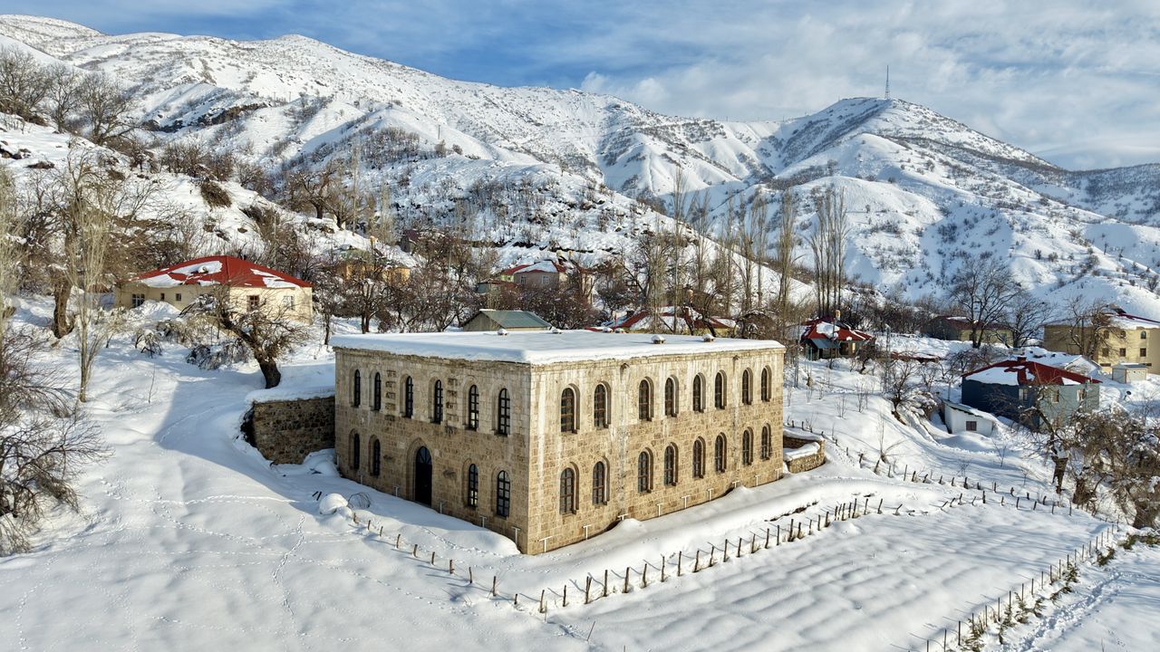 İlçede geçen haftadan bu yana aralıklarla etkisini sürdüren kar yağışıyla bazı kesimlerde kar kalınlığı bir metreyi aştı. İlçedeki tarihi Kayme Sarayı, Taş Köprü ve Seyit Taha Türbesi'nin çevresi karla kaplandı. Kar yağışıyla ortaya çıkan manzara ve tarihi yapılar dronla görüntülendi.