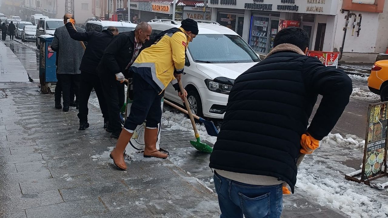 Yoğun kar yağışıyla birlikte belediye fen işleri ekipleri sahada yoğun mesai harcıyor. Karla mücadele kapsamında oluşturulan “Kar Timi”, iş makinelerinin giremediği cadde ve sokaklarda küreme ve temizlik çalışmalarına başlarken, ana arterlerde belediyeye ait iş makineleri yolları açık tutmak için aralıksız çalışıyor.