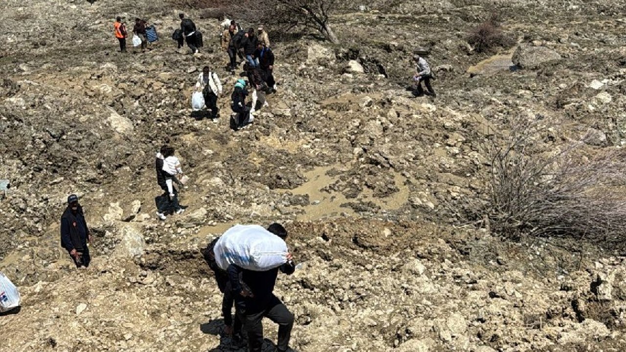 AFAD, Karayolları ve jandarma ekiplerinin desteğiyle, ellerinde valizleri bulunan vatandaşların engebeli ve çamurlu yollardan geçişi dikkat çekti.
