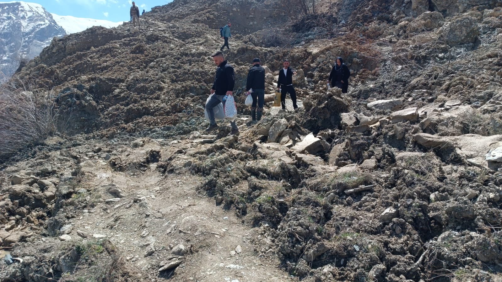 Yolun açılacağı beklentisiyle Van ve Yüksekova yönünden gelen yaklaşık bin kişi, 500 metrelik heyelan alanını yürüyerek aştı.