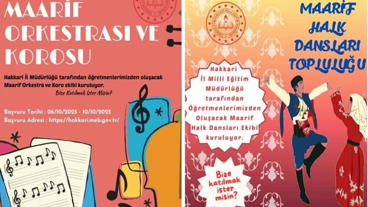 HAKKARİ – Hakkari İl Millî Eğitim Müdürlüğü, eğitim camiasında kültür ve sanatı güçlendirmek amacıyla yeni bir projeyi hayata geçiriyor. İl genelindeki öğretmenlerden oluşacak Maarif Orkestrası ve Korosu ile Maarif Halk Dansları Topluluğu kuruluyor.