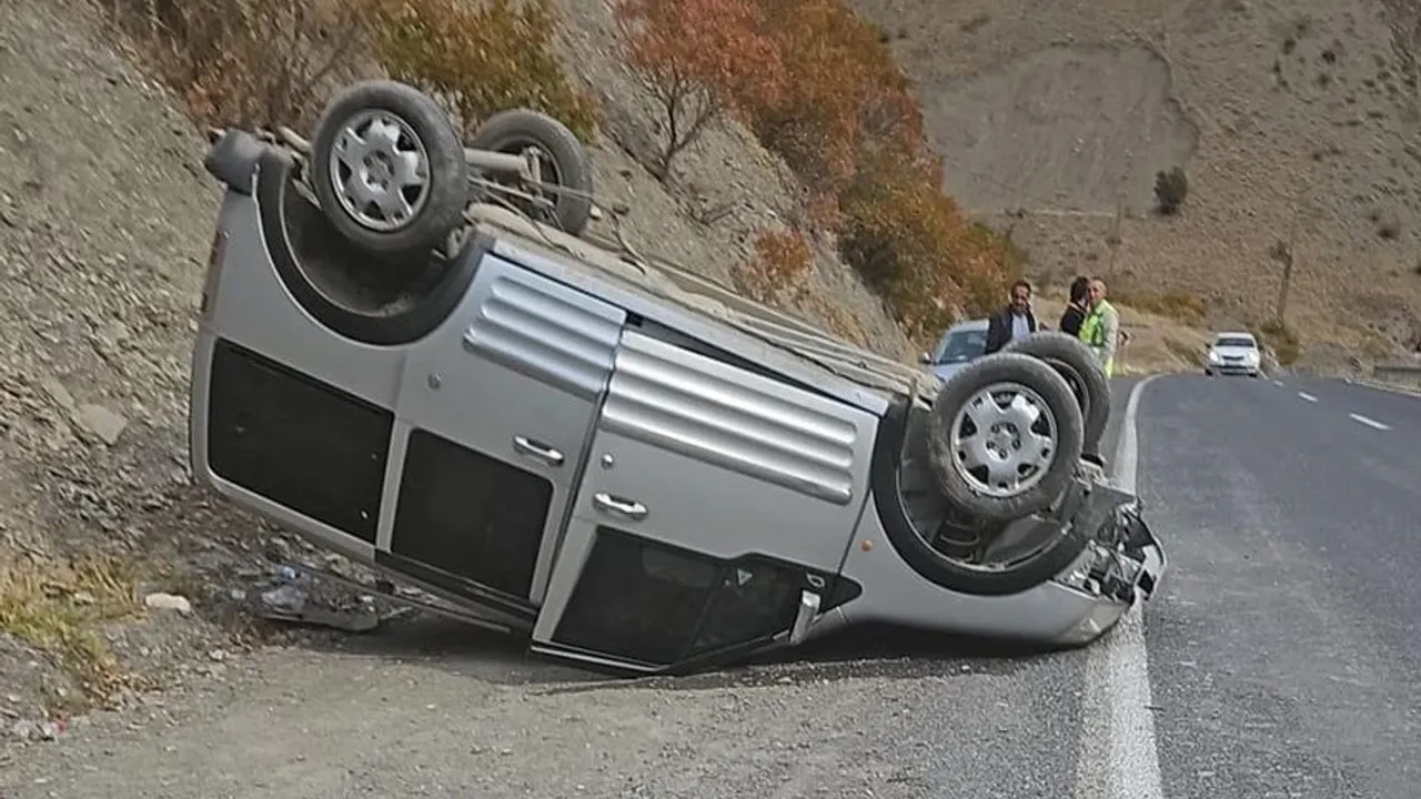HAKKARİ- Edinilen bilgilere göre, sürücüsü ve plakası henüz öğrenilemeyen hafif ticari araç, direksiyon hâkimiyetinin kaybedilmesi sonucu yoldan çıkarak takla attı.