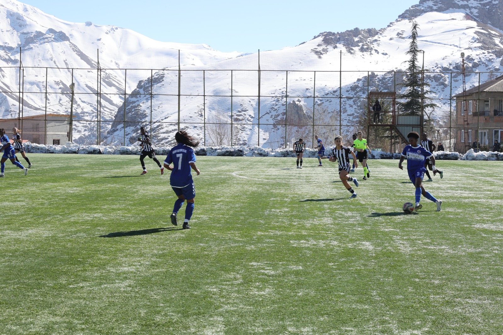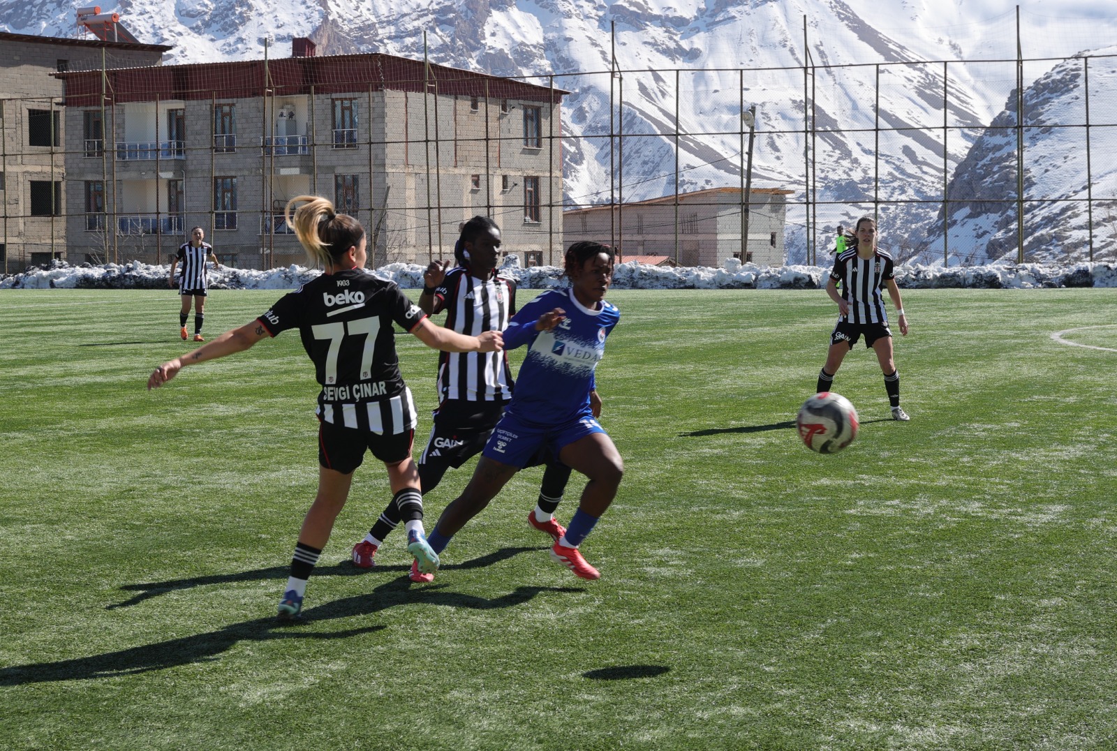 HAKKARİ- Merzan Futbol Sahası’nda oynanan karşılaşmaya her iki ekip de kontrollü başladı. Orta saha mücadelesi şeklinde geçen ilk yarıda taraflar net gol fırsatları üretmekte zorlandı. Ev sahibi Hakkarigücü, özellikle kanat organizasyonlarıyla etkili olmaya çalışırken, Beşiktaş savunmada disiplinli bir görüntü sergiledi. İlk 45 dakika golsüz eşitlikle sona erdi.