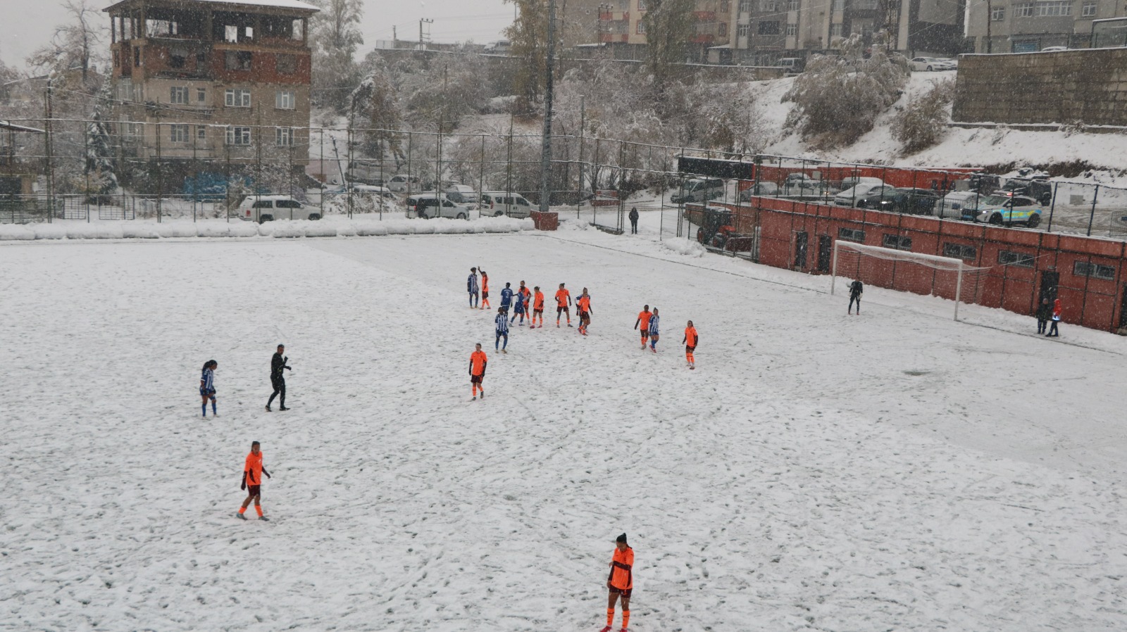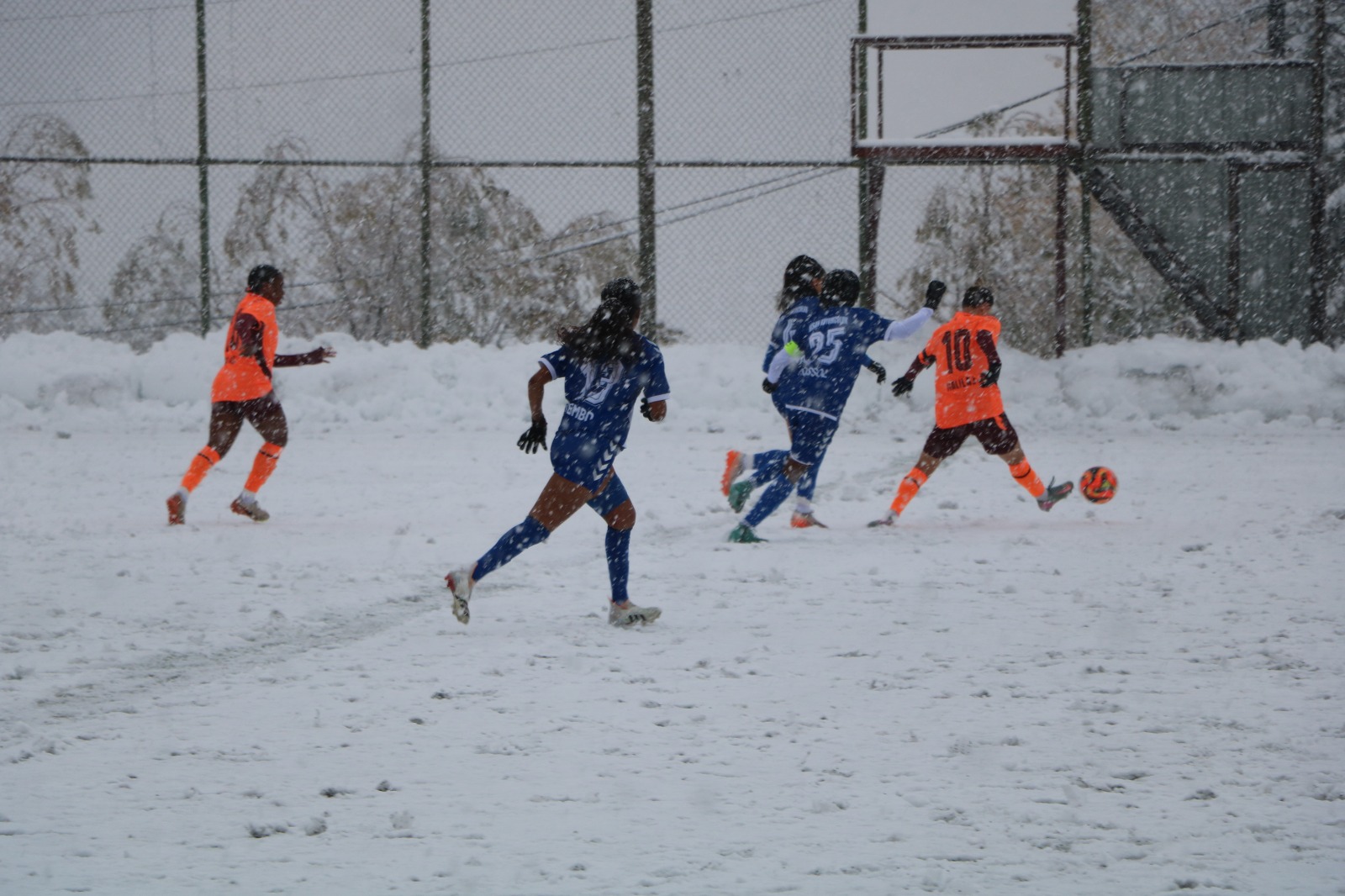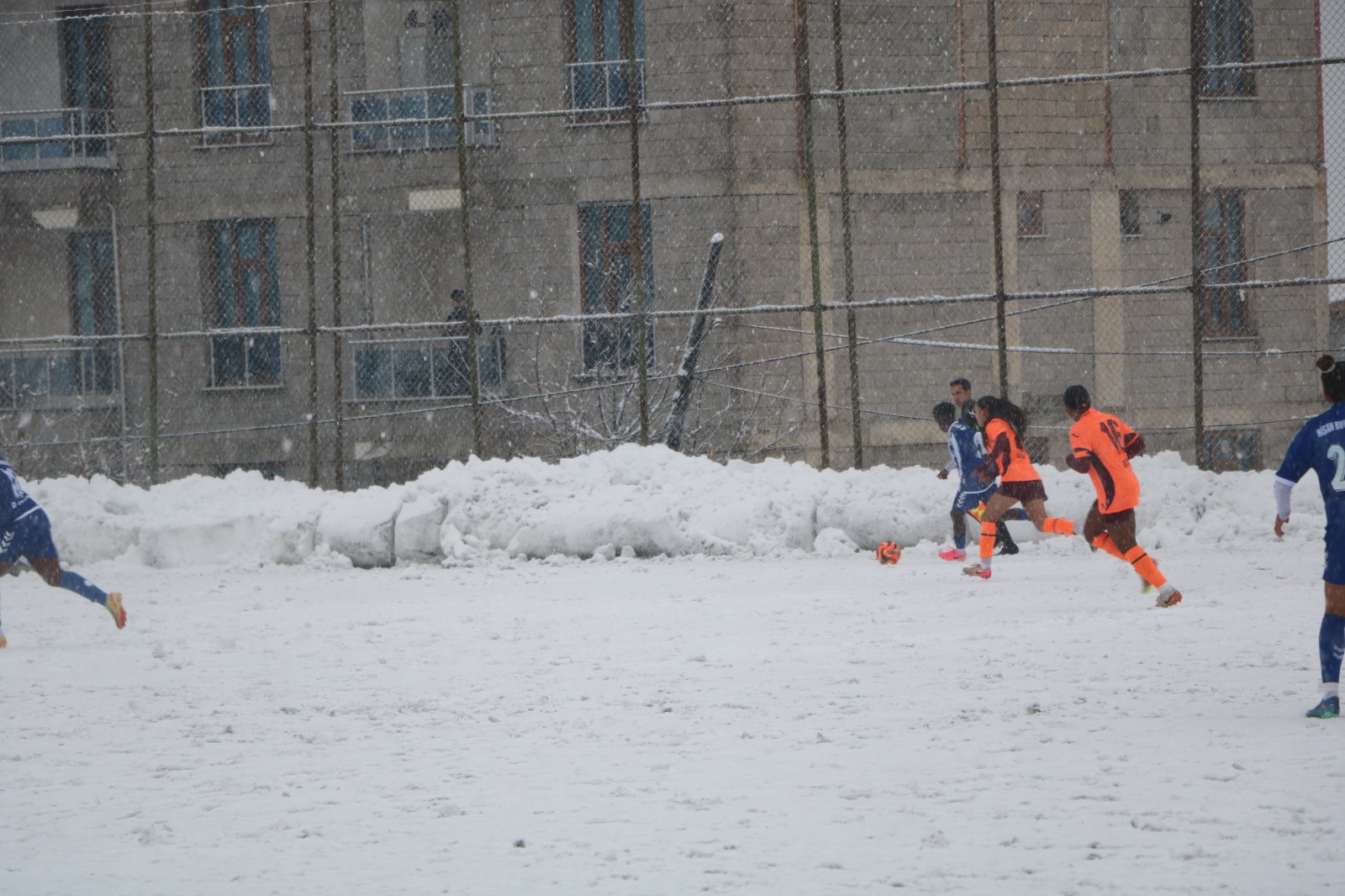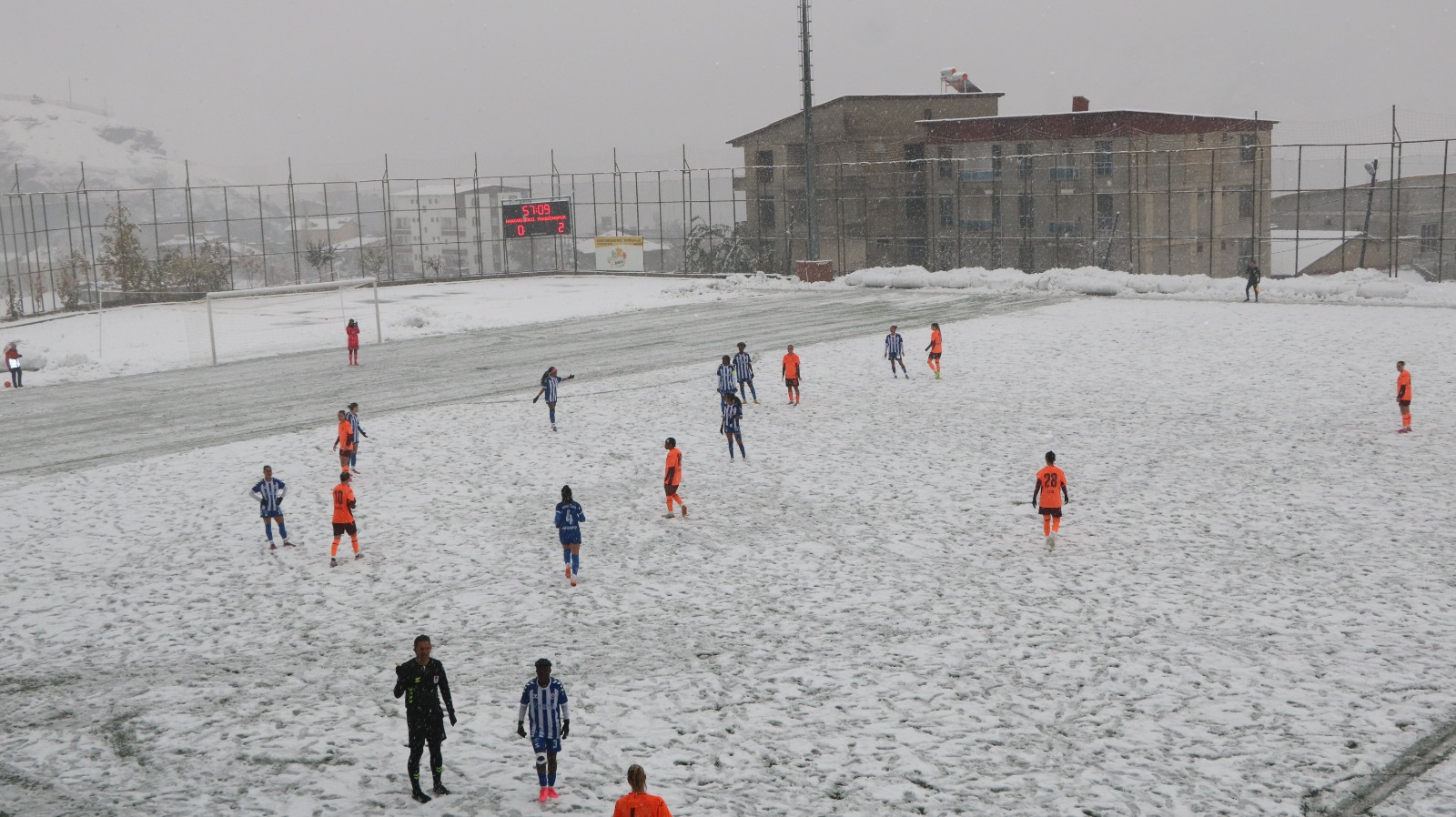 HAKKARİ- Merzan Şehir Stadı'nda zaman zaman etkisini artıran kar yağışı altında oynanan karşılaşmanın ilk yarısı, konuk ekibin üstünlüğüyle geçti.