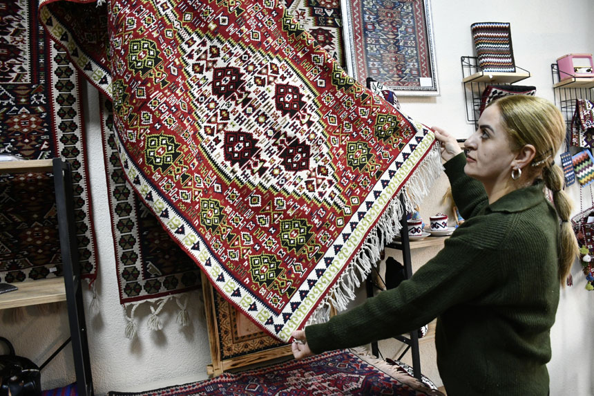 Ürünlerin büyük bölümünü kendi tasarladığını belirten Bayram, yeni hedefinin kilimden ayakkabı üretmek olduğunu da söyledi.