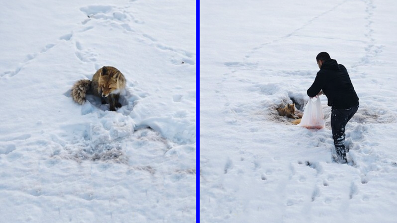 Uzun süre yiyecek bulamadığı gözlenen tilkinin zor durumda olduğunu anlayan İyinç, vakit kaybetmeden harekete geçti.