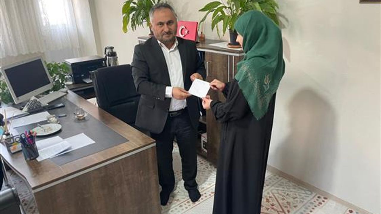 HAKKARİ- Bileklik satışından elde ettiği geliri İl Müftüsü ve Türkiye Diyanet Vakfı (TDV) Hakkari Şube Başkanı Hüseyin Okuş’a teslim eden Hakkari Hatice Ömer Utlu Yatılı Kız Kur’an Kursunda hafızlık eğitimi alan Sedef Keyfi, şunları kaydetti.