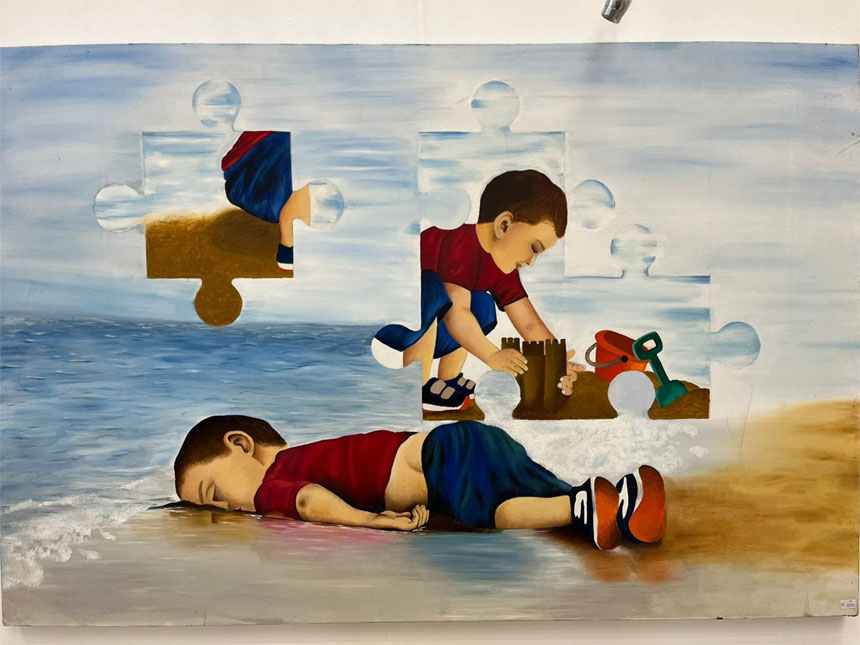 VAN - Hakkari Üniversitesi Resim Öğretmenliği Bölümü mezunları Esra Taş, Eda Taş, Evin Aydın ve Hakan Güldan, Van İpekyolu İlçesi’ndeki Atatürk Sanat Galerisinde ortak bir sergi açtı.