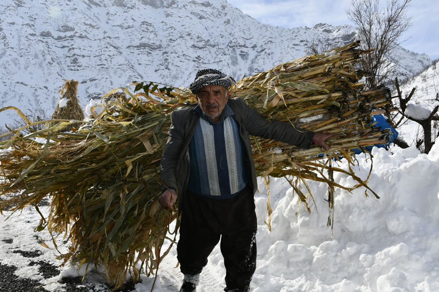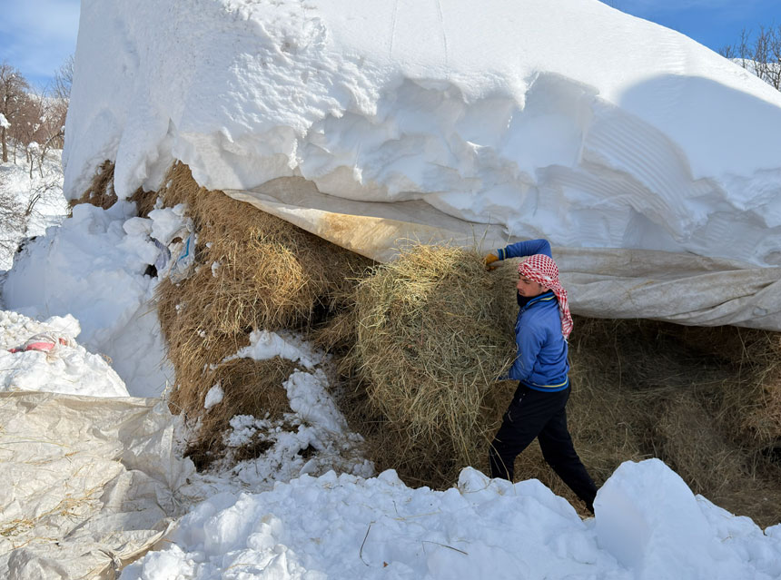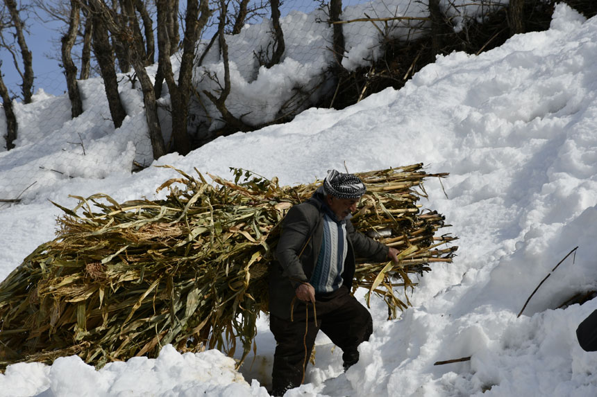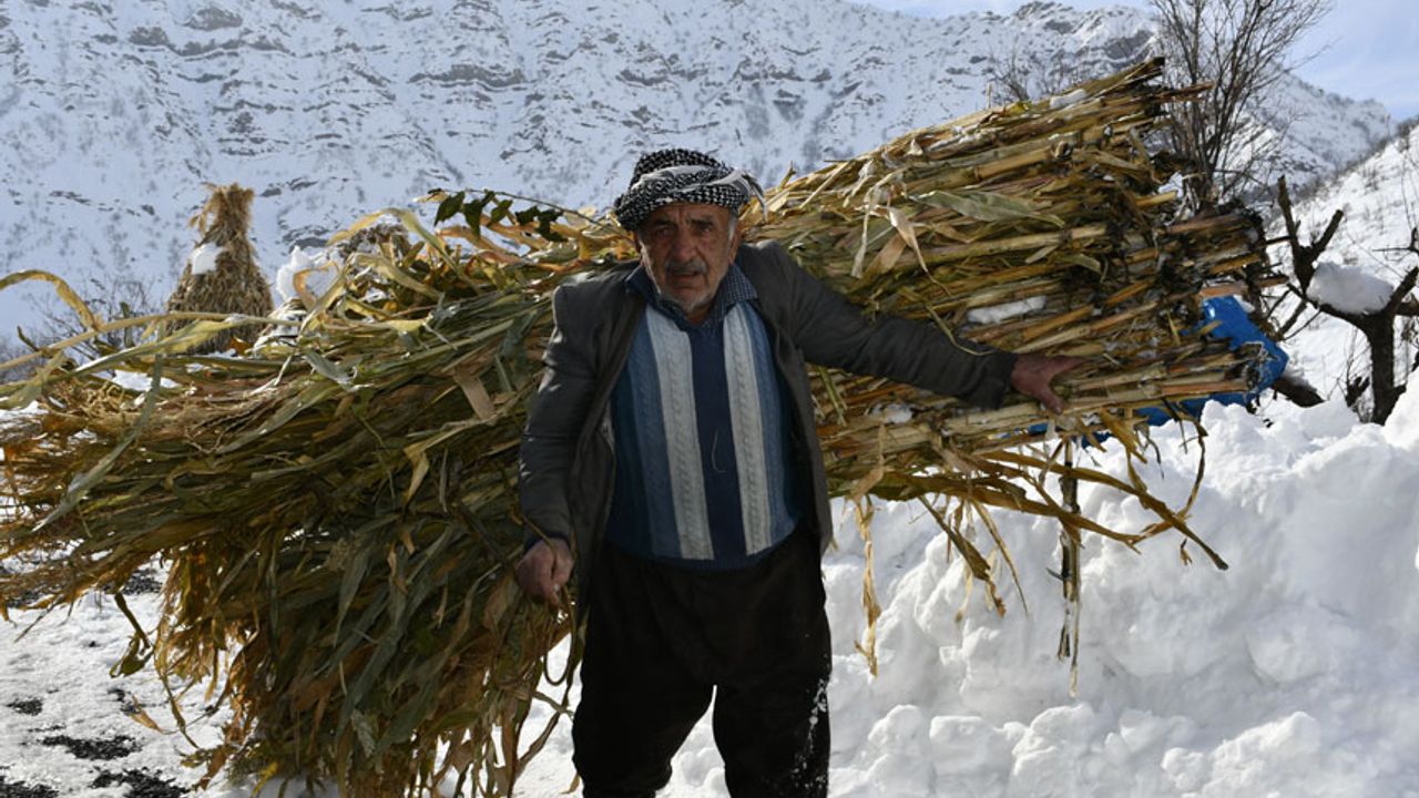 Üzümcü köyü sakinlerinden, altı çocuk babası 69 yaşındaki emekli güvenlik korucusu Abdullah Er, yoğun kar yağışının köyde yaşamı oldukça zorlaştırdığını söyledi. Ahırda beslediği keçiler için yol kenarında kar altında kalan yemleri çıkaran Er, yaşına aldırmadan sırtladığı ot balyasını yaklaşık 500 metre uzaklıktaki ahırına taşıdı.